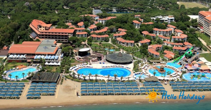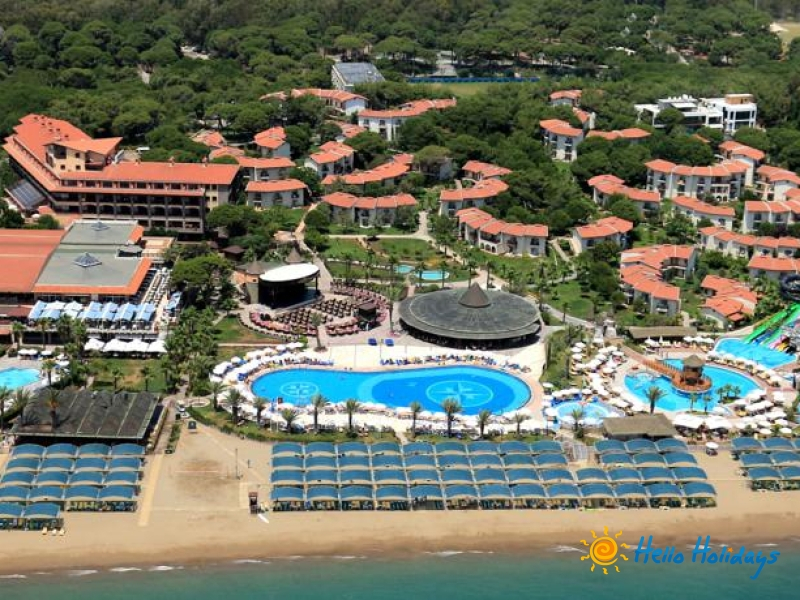 Hotelul este situat in regiunea Belek, la 35 km de aeroportul Antalya si la 40 km de centrul orasului Antalya. Hotelul dispune de 137 camere in cladirea principala si 325 camere in club. Sunt 134 camere standard (40 mp, maxim 2+2 persoane, un dormitor si o baie); 315 Club standard rooms (27 mp, 2+2 persoane, un dormitor si o baie); 6 apartamente duplex familiale (66 mp, maxim 6 persoane, doua dormitoare, un living si doua bai); 3 King Suit (80 mp, maxim 5 persoane – un dormitor, un living, o baie, vedere panoramica la mare); 1 Presidential Villa (210 mp, maxim 6 persoane, doua dormitoare, un living, doua bai cu jacuzzi). Toate camerele au aer conditionat (functioneaza in functie de conditiile meteo), telefon direct, mini bar (apa, bauturi racoritoare si bere, reumplut in ficare zi), seif, mocheta in camerele din hotel si gresie in cele din club, ceai si cafea, TV satelit si canale de muzica, balcon sau terasa.