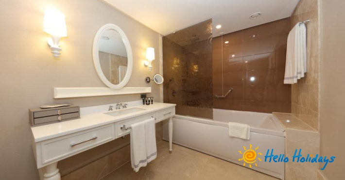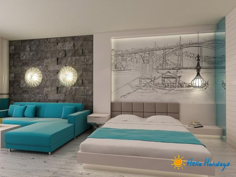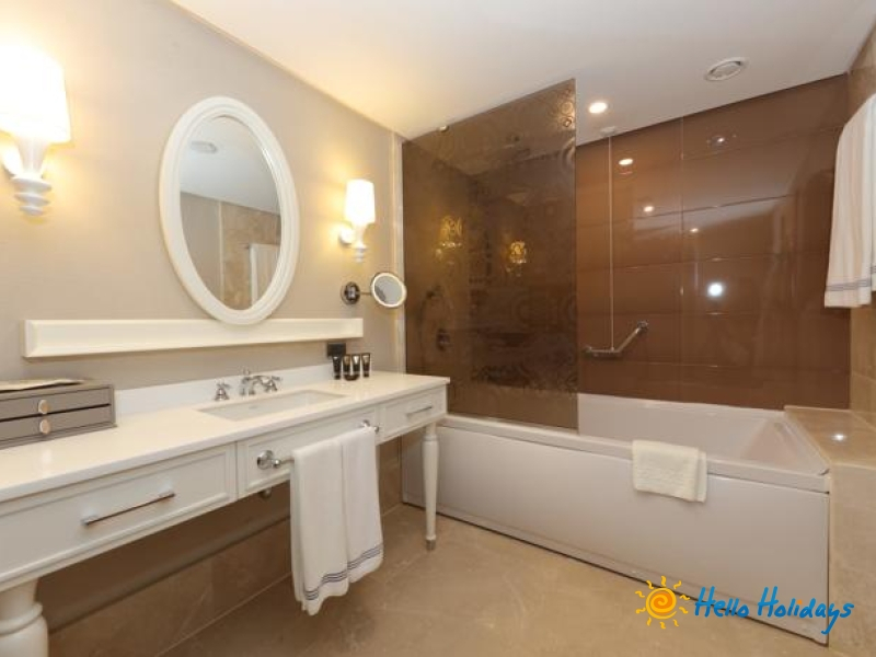 balcon sau terasă jumatate acoperita, TV satelit, A/C, baie cu jacuzzi, masa si scaune, mini frigider, uscator de par, seif (contra cost), telefon, internet WIFI.