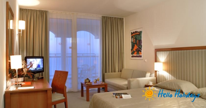 Dotari camere: baie proprie cu cada sau dus, uscator de par, aer conditionat, seif (cu plata), TV satelit, vedere spre parc, gradina sau piscina.