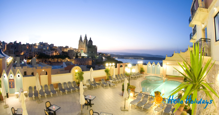 Hotelul Pergola este situat într-o pitorească zonă rezidențială, foarte aproape de centrul stațiunii Mellieha, la doar două minute de strada principală. Pergola oferă, datorită poziției sale, o panoramă superbă atât asupra numeroaselor văi ale Melliehăi, dar și asupra celei mai mari plaje cu nisip din Malta și a insulelor surori – Comino și Gozo. Este recomandat pentru cei care își doresc un sejur relaxant, departe de zgomotul orașului.