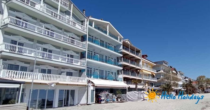Themis Beach Hotel se află pe malul mării în Paralia Katerini, la câțiva pași de plaj. Acesta dispune de recepție deschisă non-stop și de acces gratuit la internet WiFi în întreaga proprietate, iar în imediata apropiere se află magazine de suveniruri, taverne, baruri, cafenele.