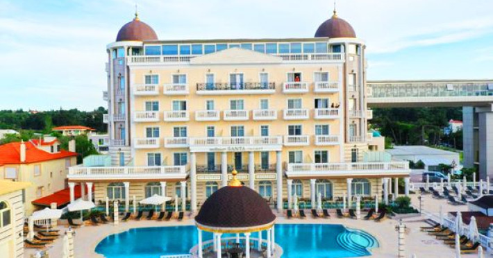 Wellness Santa Resort este un nou hotel de 5 *, ce face parte din lanțul hotelier Santa Hotels și este situat pe plaja din Agia Triada, foarte aproape de centrul comercial Peraia și la doar 30 de minute de mers cu mașina de centrul orașului Salonic. Oferind camere și apartamente de lux cu vedere la mare, precum și restaurante, wellness, divertisment și opțiuni de petrecere a timpului liber, acest hotel este alegerea ideală pentru vacanțele de lux de vis din Salonic. Facilități hotel: Hotelul pune la dispoziția turiștilor centru SPA cu piscină interioară, saună, masaj, tratamente corporale, piscină exterioară, restaurant , cafenea, longe bar, sala de conferințe și de evenimente. Facilități camere: Hotelul oferă camere de lux, majoritatea cu vedere spre mare dotate cu Wi-Fi gratuit, aer condiționat, TV cu ecran plat cu canale prin satelit, minifrigider, seif, uscător de păr, baie proprie cu duș sau cadă.