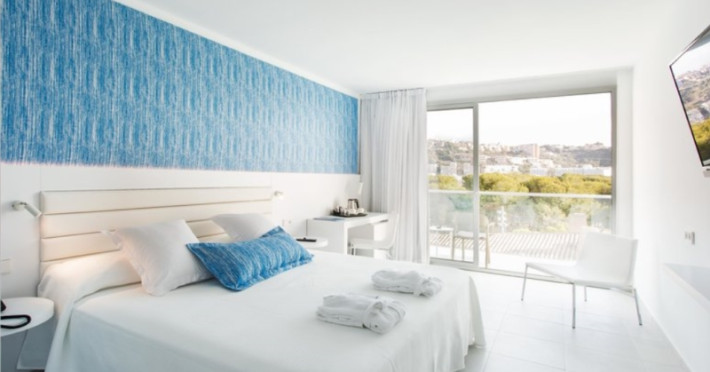 The hotel Msh Mallorca Senses Hotel Santa Ponsa (+16) is located approximately 150 m from a sandy beach and about 50 m from the sea. The nearest restaurants and bars can be reached in a few minutes on foot. The old town is around 21 km away. You can find a range of shops and a supermarket directly on your doorstep. There is a shuttle service between the hotel and the airport. The beach is patrolled by a lifeguard and awarded a blue flag. Here, there are beach towels for a fee available. Directly next to the beach there is a promenade where you can take leisurely walks. The air-conditioned hotel is equipped with a 24h reception (check-in is possible around the clock), a lobby bar, Wi-Fi, 5 lifts, cash machine, a jacuzzi, showers and changing rooms, a first aid kit, parking spaces (for a fee) as well as a TV lounge with satellite TV. In the outdoor area of the property you will find a garden as well as a heated pool that is open seasonally (open all year), where sun loungers, sun umbrellas and pool towels are available for free. Furthermore, you can relax outdoors on the sun terrace. Inside the hotel you can use an indoor pool. You can store your valuables in the safe (extra fee), and your luggage in the hotel`s storage roomn. There is also a laundry service available at an additional cost to customers as well as an ironing service. For your comfort, in addition to the concierge service the hotel page will ensure you are looked after. If necessary, you can contact the medical centre at any time (for a fee). Guests at the accommodation can get a wake-up call from the hotel personnel. For conventions and other business meetings, the hotel offers a business centre as well as a conference area (extra fee) with a total of 30 seats, printer, fax as well as overhead projector. If you want to explore the holiday region, you can use the car and motorbike rental service close to the hotel (extra fee). At the reception, tickets are offered for excursions in the area. For guests on their honeymoon, the hotel has special offers such as special honeymoon packages. In your hotel, a lot of focus is placed on sustainability. This includes among others the hotel`s own recycling bins. Due to its barrier-free facilities , such as barrier-free entrances, wheelchair accessible rooms and wheelchair-accessible bathrooms, the hotel is also suitable for wheelchair users. Catering As catering services the hotel offers half board and breakfast only. Breakfast is offered continental or from the buffet. Enjoy your lunch à la carte. Dinner is also served as a buffet or as a set meal (extras on request). For the meals, there are a buffet restaurant with terrace (Mediterranean, calorie-reduced, gluten-free and vegetarian dishes) and 2 bars, the cafeteria as well as the pool bar. For dinner, guests are asked to wear appropriate clothing in the restaurant. Distances- Discotheque: approx. 1 km