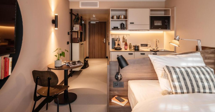 Fiecare unitate include o baie proprie cu duș, climatizare, un televizor cu ecran plat și un frigider. Unele unități au de asemenea o chicinetă cu cuptor cu microunde și plită.