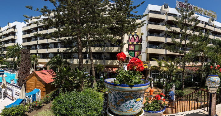 The accommodation Hotel Rey Carlos is located approximately 300 m from a beach. The hotel is equipped with a 24h reception, a shop, a hairdresser, a jacuzzi as well as parking spaces (for a fee). In the outdoor area of the property you will find a garden as well as a heated pool, where sun loungers are available for free. For children there is also a children's pool. Furthermore, outside you can find a sun terrace. For conventions and other business meetings, the hotel offers a conference area. If you want to explore the holiday region, you can use the car rental service close to the hotel (extra fee). Pets like cats and dogs are allowed in the hotel (for a fee). Catering Your physical well-being is catered for by a bar. Distances