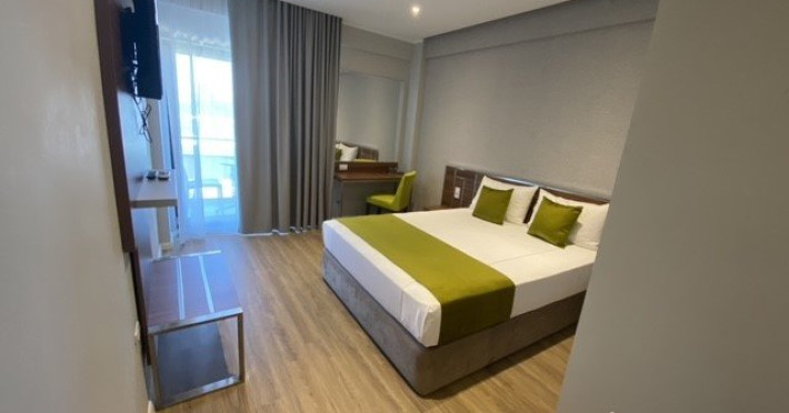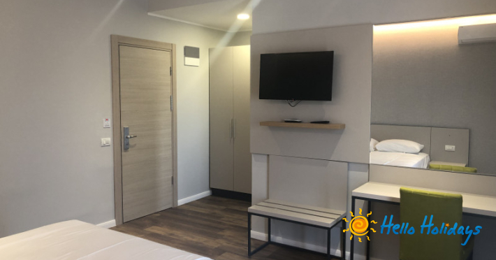 InformatiiHOTEL RHODOS situat la 100 m de plaja, a fost complet renovat in 2019 si este alcatuit din 65 spatii de cazare (39 camere duble standard, 14 duble superioare si 12 triple. Acestea au aceleasi dotari, dar sunt pozitionate in corpuri diferite.