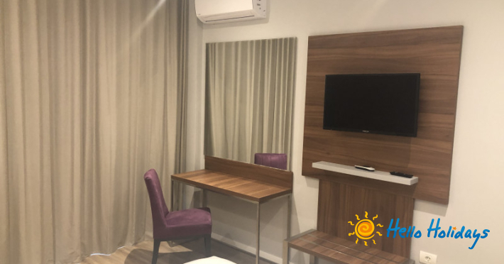Camerele duble dispun de balcon, TV, telefon, minibar/frigider, aer conditionat, baie cu cabina dus, uscator de par, mobilier nou, mocheta, acces pe baza de card. Camerele duble standard sunt cele vechi care se afla doar la parter ( au balcon ) si au mobilier maro.