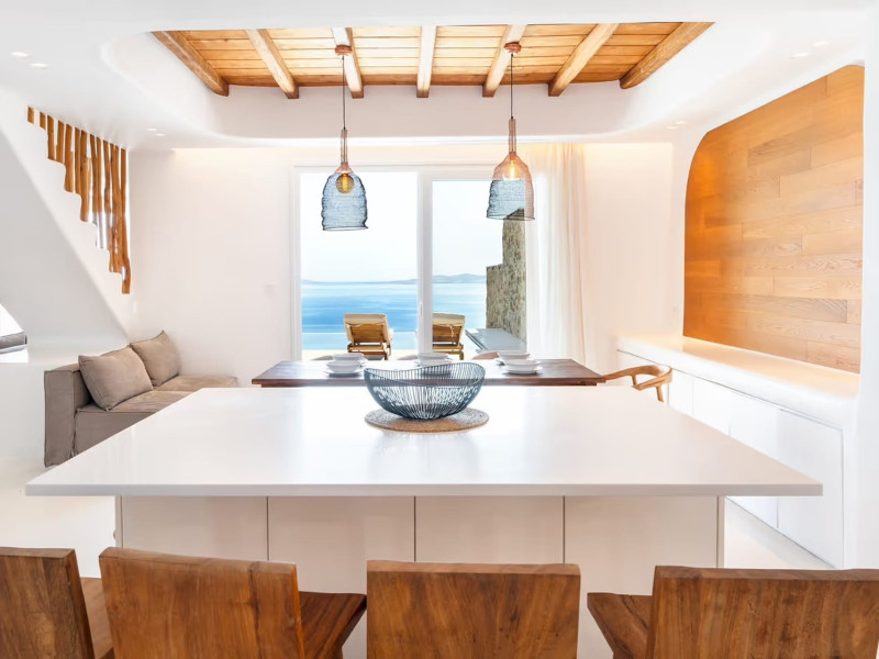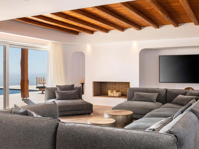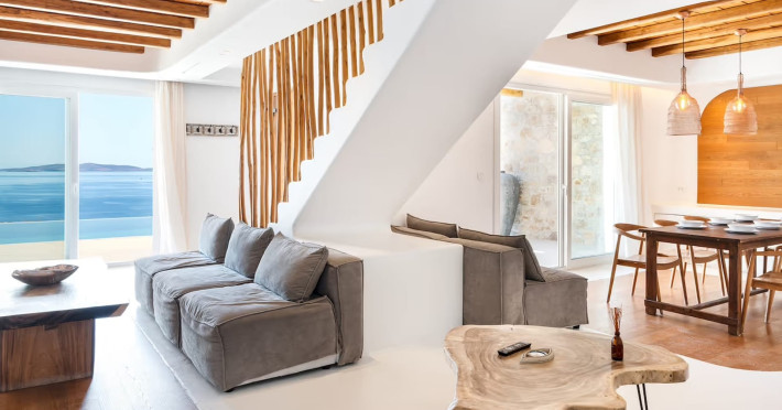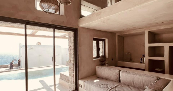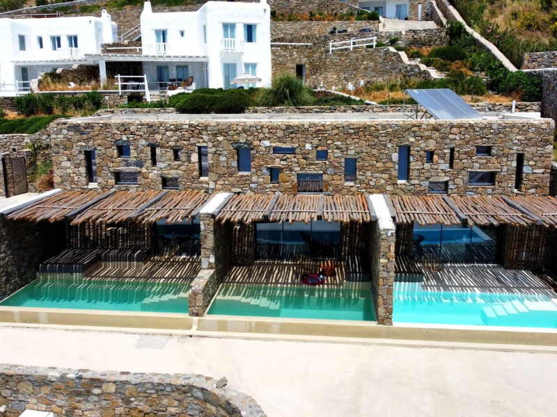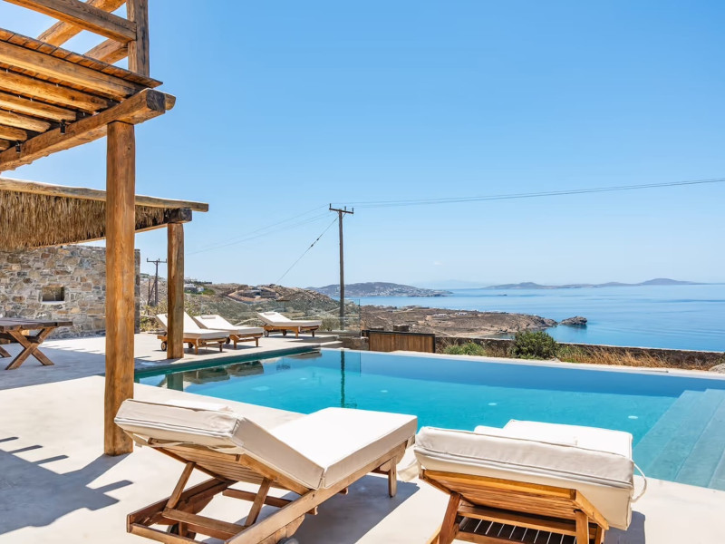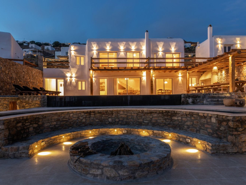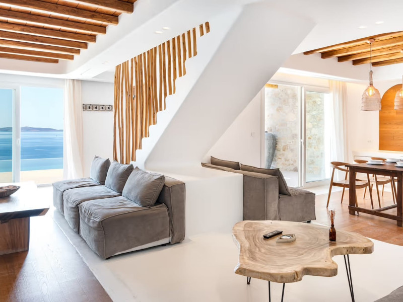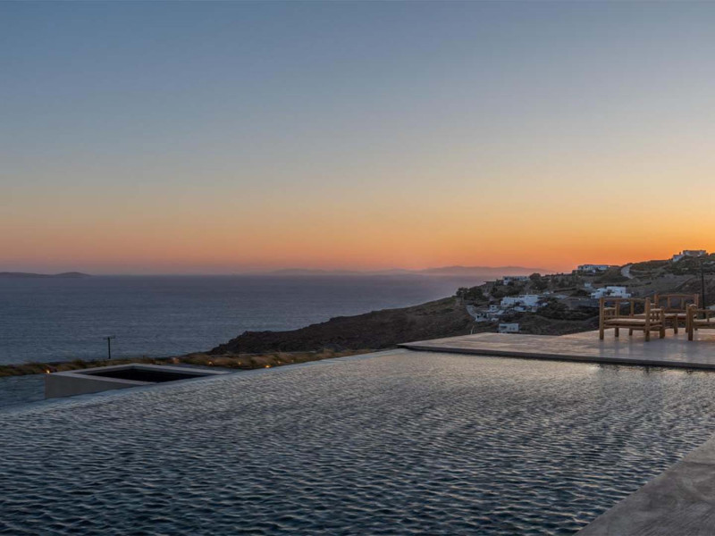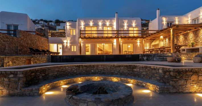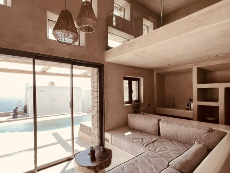 Ria Mar Villas and Suites by Live&Travel is an exclusive complex perched on the serene hills of Choulakia, offering five independent luxury units: a 5-bedroom villa with a private infinity pool, Jacuzzi, and hammam, a 3-bedroom villa with a private pool, and three 1-bedroom suites, each boasting their own private pool. These properties are designed in a modern boho style that blends Cycladic minimalism with contemporary elegance, featuring panoramic views of the Aegean Sea and mesmerizing sunsets. Highlights: 5-Bedroom Villa: Sleeps up to 10 guests, with en-suite bedrooms, a fully equipped kitchen, and spacious indoor and outdoor living areas. It includes a 48 m² infinity pool, a 22 m² Jacuzzi, a hammam steam room, and an outdoor firepit. 3-Bedroom Villa: Perfect for families or groups, with expansive sea views, private pool, and elegant indoor spaces. 1-Bedroom Suites: Each suite is thoughtfully designed, with mezzanine-style sleeping areas, airy interiors, and private pools. Located just a short drive from Mykonos Town and near Agios Stefanos Beach, the complex is ideal for those seeking privacy, relaxation, and easy access to the island’s vibrant attractions. Whether you're planning a tranquil escape or a lively group retreat, Ria Mar Villas and Suites offer a tailored luxury experience infused with authentic Mykonian charmRia Mar Villas and Suites by Live&Travel is an exclusive complex perched on the serene hills of Choulakia, offering five independent luxury units: a 5-bedroom villa with a private infinity pool, Jacuzzi, and hammam, a 3-bedroom villa with a private pool, and three 1-bedroom suites, each boasting their own private pool. These properties are designed in a modern boho style that blends Cycladic minimalism with contemporary elegance, featuring panoramic views of the Aegean Sea and mesmerizing sunsets. Highlights: 5-Bedroom Villa: Sleeps up to 10 guests, with en-suite bedrooms, a fully equipped kitchen, and spacious indoor and outdoor living areas. It includes a 48 m² infinity pool, a 22 m² Jacuzzi, a hammam steam room, and an outdoor firepit. 3-Bedroom Villa: Perfect for families or groups, with expansive sea views, private pool, and elegant indoor spaces. 1-Bedroom Suites: Each suite is thoughtfully designed, with mezzanine-style sleeping areas, airy interiors, and private pools. Located just a short drive from Mykonos Town and near Agios Stefanos Beach, the complex is ideal for those seeking privacy, relaxation, and easy access to the island’s vibrant attractions. Whether you're planning a tranquil escape or a lively group retreat, Ria Mar Villas and Suites offer a tailored luxury experience infused with authentic Mykonian charm