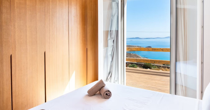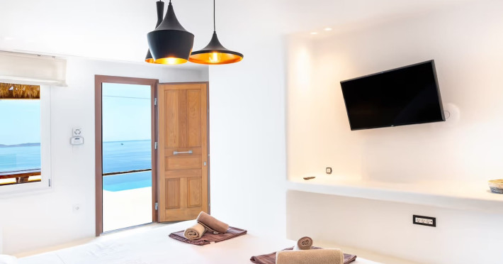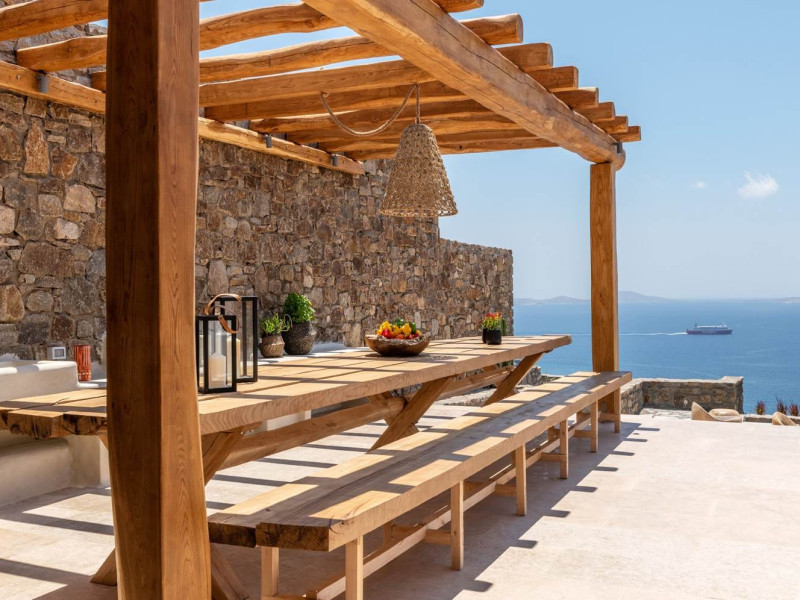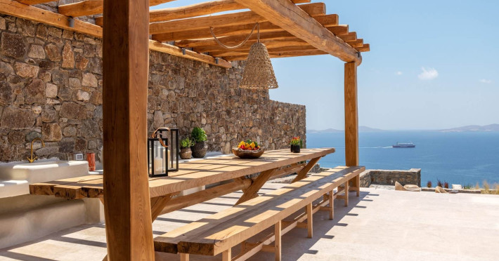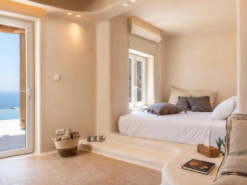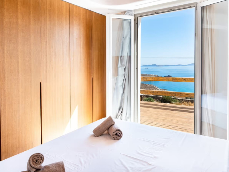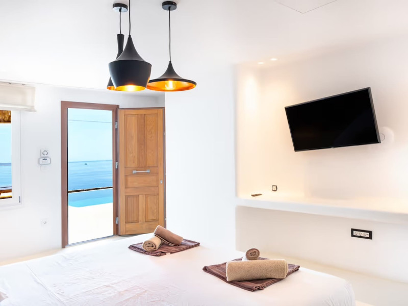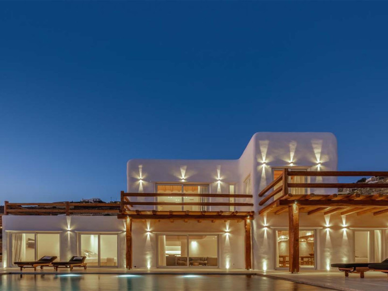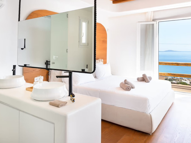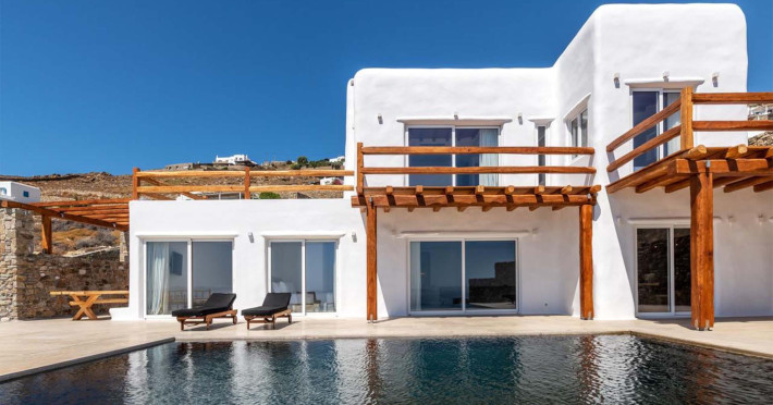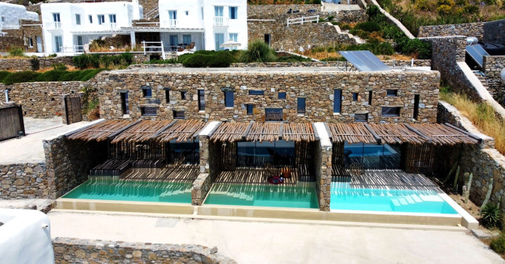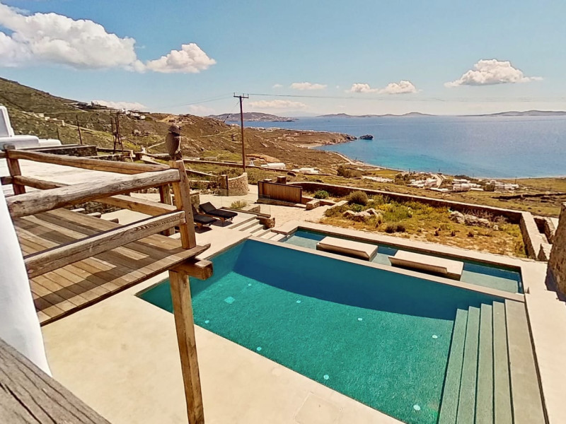 Ria Mar Villas and Suites by Live&Travel is an exclusive complex perched on the serene hills of Choulakia, offering five independent luxury units: a 5-bedroom villa with a private infinity pool, Jacuzzi, and hammam, a 3-bedroom villa with a private pool, and three 1-bedroom suites, each boasting their own private pool. These properties are designed in a modern boho style that blends Cycladic minimalism with contemporary elegance, featuring panoramic views of the Aegean Sea and mesmerizing sunsets. Highlights: 5-Bedroom Villa: Sleeps up to 10 guests, with en-suite bedrooms, a fully equipped kitchen, and spacious indoor and outdoor living areas. It includes a 48 m² infinity pool, a 22 m² Jacuzzi, a hammam steam room, and an outdoor firepit. 3-Bedroom Villa: Perfect for families or groups, with expansive sea views, private pool, and elegant indoor spaces. 1-Bedroom Suites: Each suite is thoughtfully designed, with mezzanine-style sleeping areas, airy interiors, and private pools. Located just a short drive from Mykonos Town and near Agios Stefanos Beach, the complex is ideal for those seeking privacy, relaxation, and easy access to the island’s vibrant attractions. Whether you're planning a tranquil escape or a lively group retreat, Ria Mar Villas and Suites offer a tailored luxury experience infused with authentic Mykonian charmRia Mar Villas and Suites by Live&Travel is an exclusive complex perched on the serene hills of Choulakia, offering five independent luxury units: a 5-bedroom villa with a private infinity pool, Jacuzzi, and hammam, a 3-bedroom villa with a private pool, and three 1-bedroom suites, each boasting their own private pool. These properties are designed in a modern boho style that blends Cycladic minimalism with contemporary elegance, featuring panoramic views of the Aegean Sea and mesmerizing sunsets. Highlights: 5-Bedroom Villa: Sleeps up to 10 guests, with en-suite bedrooms, a fully equipped kitchen, and spacious indoor and outdoor living areas. It includes a 48 m² infinity pool, a 22 m² Jacuzzi, a hammam steam room, and an outdoor firepit. 3-Bedroom Villa: Perfect for families or groups, with expansive sea views, private pool, and elegant indoor spaces. 1-Bedroom Suites: Each suite is thoughtfully designed, with mezzanine-style sleeping areas, airy interiors, and private pools. Located just a short drive from Mykonos Town and near Agios Stefanos Beach, the complex is ideal for those seeking privacy, relaxation, and easy access to the island’s vibrant attractions. Whether you're planning a tranquil escape or a lively group retreat, Ria Mar Villas and Suites offer a tailored luxury experience infused with authentic Mykonian charm