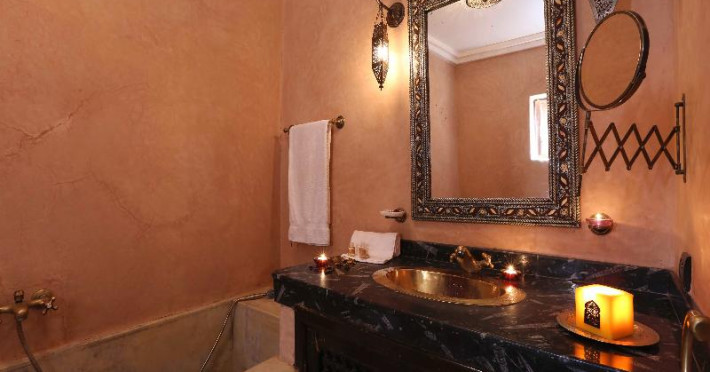 This charming riad is situated in the Dar El Bacha district, one of the most exclusive districts in the medina of Marrakech. The city centre is approximately 1 km from this themed design hotel and the Djemaa el Fna main square is just 400 m away. Guests will find main places of interest in the immediate vicinity and Menara Airport is around 7 km away. The family-friendly historical hotel features 5 traditional rooms and an open patio in the centre of the riad, offering a relaxing setting where guests can unwind or enjoy a drink or meal. Fitted with a lovely fountain, it provides a refreshing atmosphere during the summer months. Guests who need extra refreshment can relax on the sun terrace or make use of the hotels SPA facilities. Meals are created on-site by the hotels cook according to guests individual requirements.This charming riad is situated in the Dar El Bacha district, one of the most exclusive districts in the medina of Marrakech. The city centre is approximately 1 km from this themed design hotel and the Djemaa el Fna main square is just 400 m away. Guests will find main places of interest in the immediate vicinity and Menara Airport is around 7 km away. The family-friendly historical hotel features 5 traditional rooms and an open patio in the centre of the riad, offering a relaxing setting where guests can unwind or enjoy a drink or meal. Fitted with a lovely fountain, it provides a refreshing atmosphere during the summer months. Guests who need extra refreshment can relax on the sun terrace or make use of the hotels SPA facilities. Meals are created on-site by the hotels cook according to guests individual requirements.