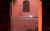 A wall fountain dominates the small swimming pool surrounded with balustrades. The riad is fitted with two lounges, one of which has a chimney. On the terrace, flowers and deck chairs complete the set.