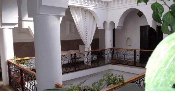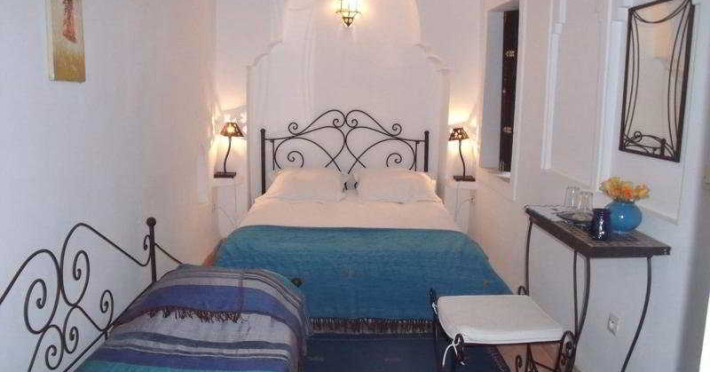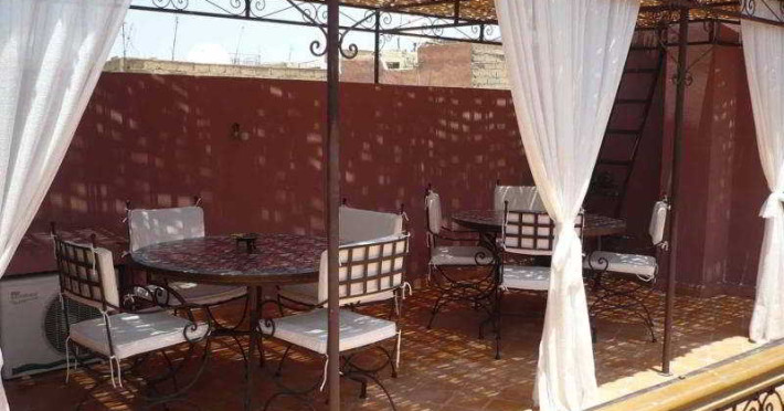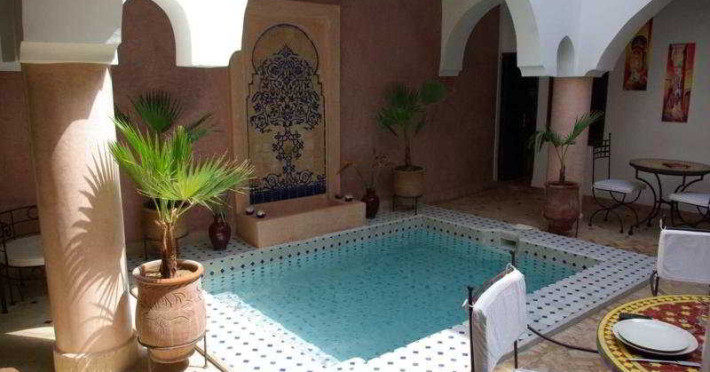 The riad is very well situated in one of the last authentic districts of the Medina of Marrakesh. It is easily accessible with a guarded car park 100 m away. The parks surrounding the gate to the riad are just 5 minutes away by car and the inescapable Jeema El Fna square can be reached in 15 minutes by foot through the souks. Menara Airport is approximately 15 km away from the establishment.||In this riad everything is made so that the intimacy of the customers is protected. The atmosphere is restful and there are so many places to meet to end the day, such as various small lounges, deckchairs on the terrace and the sofas under the Berber tent. The omnipresent but discreet members of staff are on hand to guarantee guests an even more pleasant stay. Further facilities available to guests include 24-hour reception and check-out services and a TV lounge, as well as a restaurant and Internet access in public areas. A laundry service is also provided.||This small riad consists of 4 rooms and was recently renewed with simplicity and taste. The property offers guests accommodation with all modern comforts. Rooms come with a private shower room and are equipped with reversible air conditioning units and a safe. A self-service Internet point and wireless Internet access, as well as satellite television are also provided. Further standard features include tea and coffee making facilities and a double bed.||The swimming pool on the patio as well as the wall fountain will provide guests with a real sensation of freshness. The raised patio, the Bhou (a lounge opened on the passageway), the terrace with its Berber tent, the arbour with its bougainvilleas and deckchairs ensure an intimate setting and peace of mind after a day spent among the souks. Special spa packages are also available to be enjoyed. Meanwhile, fans of the fairway can head to the nearest golf course, which is only 5 minutes away by car.The riad is very well situated in one of the last authentic districts of the Medina of Marrakesh. It is easily accessible with a guarded car park 100 m away. The parks surrounding the gate to the riad are just 5 minutes away by car and the inescapable Jeema El Fna square can be reached in 15 minutes by foot through the souks. Menara Airport is approximately 15 km away from the establishment.||In this riad everything is made so that the intimacy of the customers is protected. The atmosphere is restful and there are so many places to meet to end the day, such as various small lounges, deckchairs on the terrace and the sofas under the Berber tent. The omnipresent but discreet members of staff are on hand to guarantee guests an even more pleasant stay. Further facilities available to guests include 24-hour reception and check-out services and a TV lounge, as well as a restaurant and Internet access in public areas. A laundry service is also provided.||This small riad consists of 4 rooms and was recently renewed with simplicity and taste. The property offers guests accommodation with all modern comforts. Rooms come with a private shower room and are equipped with reversible air conditioning units and a safe. A self-service Internet point and wireless Internet access, as well as satellite television are also provided. Further standard features include tea and coffee making facilities and a double bed.||The swimming pool on the patio as well as the wall fountain will provide guests with a real sensation of freshness. The raised patio, the Bhou (a lounge opened on the passageway), the terrace with its Berber tent, the arbour with its bougainvilleas and deckchairs ensure an intimate setting and peace of mind after a day spent among the souks. Special spa packages are also available to be enjoyed. Meanwhile, fans of the fairway can head to the nearest golf course, which is only 5 minutes away by car.