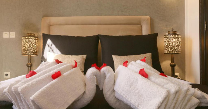 Oferind decor in stil marocan, toate camerele cu aer conditionat au baie privată cu dus. Unele dintre acestea beneficiază de vedere la patio.