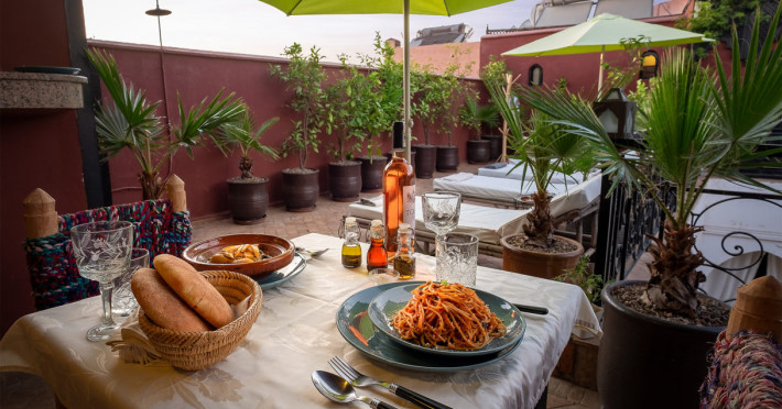 Riad Aliya is an ancient mansion completely restored, located in the KESBAH neighborhood, in the heart of the medina (old city) of Marrakech, close to the airport (5 minutes), near the Royal Palace and the famous and mythical Jema EL FNAA and its traditional souks. Built around a courtyard (patio) with a swimming pool where you can refresh yourself, it consists of 6 bedrooms with bathroom and a living room you will find a space of beauty, refinement and calm in a picturesque area. From breakfast to dinner by candlelight, a refined traditional cuisine is served on the terrace or you will see the snow-covered Atlas, on which you can lie in the sun. A session hamam beldi, beauty treatments and massages will complement your well being.Riad Aliya is an ancient mansion completely restored, located in the KESBAH neighborhood, in the heart of the medina (old city) of Marrakech, close to the airport (5 minutes), near the Royal Palace and the famous and mythical Jema EL FNAA and its traditional souks. Built around a courtyard (patio) with a swimming pool where you can refresh yourself, it consists of 6 bedrooms with bathroom and a living room you will find a space of beauty, refinement and calm in a picturesque area. From breakfast to dinner by candlelight, a refined traditional cuisine is served on the terrace or you will see the snow-covered Atlas, on which you can lie in the sun. A session hamam beldi, beauty treatments and massages will complement your well being.