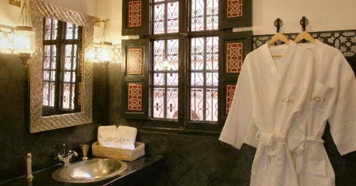 The charming riad is a haven of peace and relaxation, tastefully decorated with many traditional Moroccan features. It offers a patio full of plants, a winter conservatory and 2 summer rooms, and 2 terraces with fabulous views over the snow-capped Atlas Mountains and the roof-tops of the Red City, Pearl of the South. A dedicated team of staff will attend to guests wishes regarding their comfort, meals and general enquiries. Guests are welcomed into the 6-room historical hotel in a lobby with 24-hour reception and check-out services, a hotel safe and currency exchange facilities. Fully air-conditioned, the city hotel also offers a TV lounge, restaurant, Internet access, room and laundry services, and guarded parking (fees apply).The charming riad is a haven of peace and relaxation, tastefully decorated with many traditional Moroccan features. It offers a patio full of plants, a winter conservatory and 2 summer rooms, and 2 terraces with fabulous views over the snow-capped Atlas Mountains and the roof-tops of the Red City, Pearl of the South. A dedicated team of staff will attend to guests wishes regarding their comfort, meals and general enquiries. Guests are welcomed into the 6-room historical hotel in a lobby with 24-hour reception and check-out services, a hotel safe and currency exchange facilities. Fully air-conditioned, the city hotel also offers a TV lounge, restaurant, Internet access, room and laundry services, and guarded parking (fees apply).