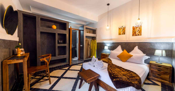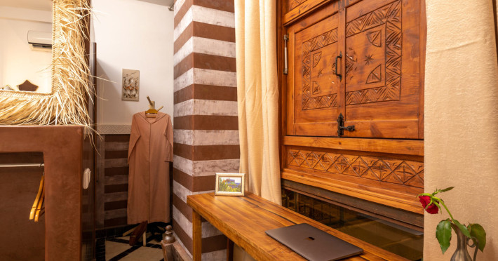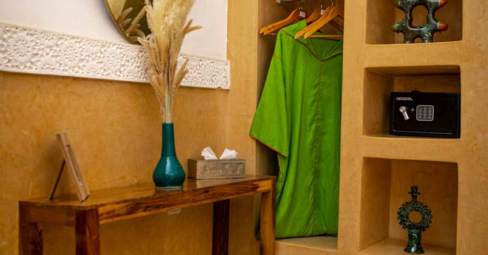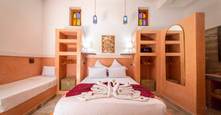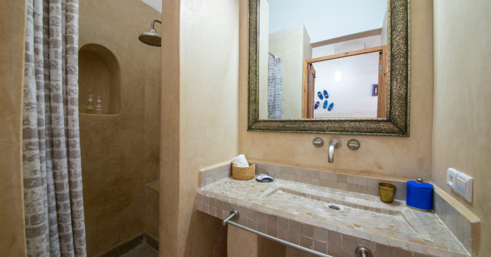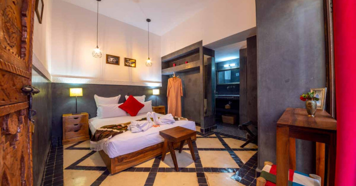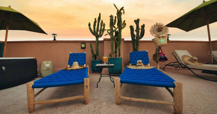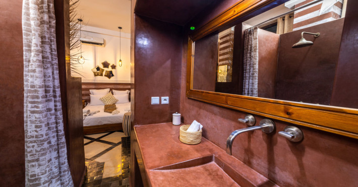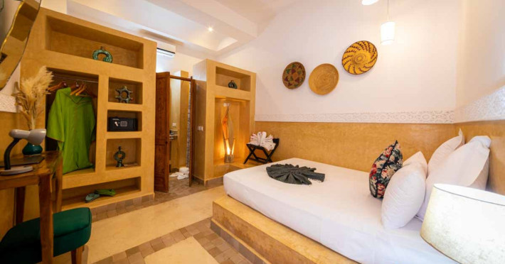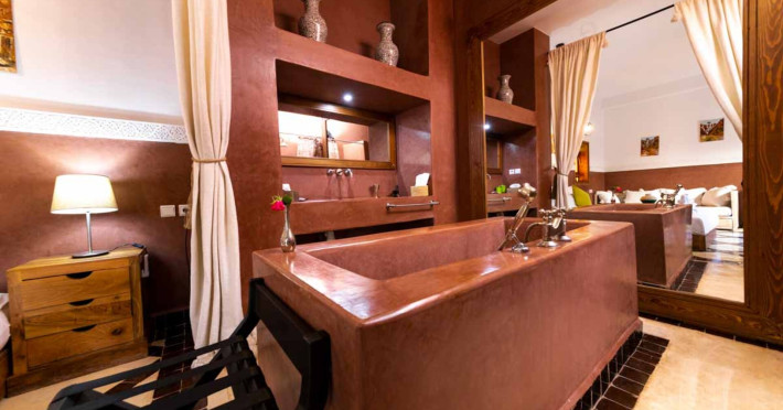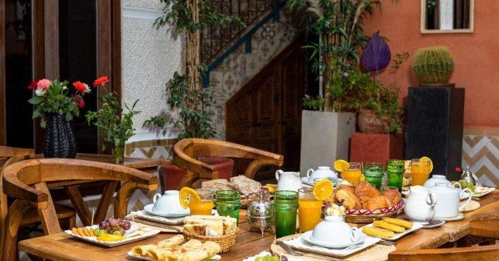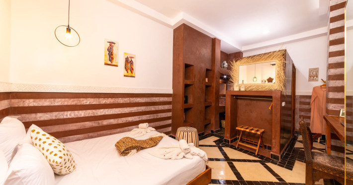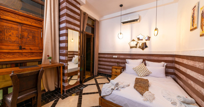 There is a 24h shuttle service between the hotel and the airport (for a fee) 24h a day. The GPS-verified aparthotel Riad Ambre et Jasmin has a reception (check-in is possible around the clock), Wi-Fi (for a fee), parking spaces (limited and for a fee) as well as a TV lounge with satellite TV. Furthermore, you can relax outdoors on the roof terrace. In addition, the hotel Riad Ambre et Jasmin is video-monitored 24h a day. For very young guests, cots can also be provided. For your comfort there is a concierge service. If necessary, you can contact the medical centre (for a fee). The energy supply is 220 Volts. For conventions and other business meetings, the hotel offers an auditorium with printer. At the reception, tickets are offered for excursions in the area. For guests on their honeymoon, the hotel has special offers such as a romantically-decorated room, personalised rooms/articles, rooms with a particularly romantic location and view, romantic dishes in the restaurant, champagne, sparkling wine, a present, a basket of fruit or flowers in the room. In your hotel, a lot of focus is placed on sustainability. This includes among others organic food and ecological meals. American Express, Euro/Master Card and JCB are accepted as means of payment. Catering As catering services the hotel offers all-inclusive light, half board, half board plus and breakfast only. Breakfast is offered continental. Enjoy your lunch as a set meal or à la carte. Dinner is served as a set meal. In the gastronomic area calorie-reduced, also vegetarian and gluten-free dishes are served. The drinks menu of the hotel includes water, soft drinks, coffee and tea, beer and wine. During your stay you can take part in the cooking classes offered by the hotel (extra fee). Sports & Leisure The wellness area offers massages (extra fee). Additional information This hotel is gay-friendly. The hotel staff speak English, French and Arabic.There is a 24h shuttle service between the hotel and the airport (for a fee) 24h a day. The GPS-verified aparthotel Riad Ambre et Jasmin has a reception (check-in is possible around the clock), Wi-Fi (for a fee), parking spaces (limited and for a fee) as well as a TV lounge with satellite TV. Furthermore, you can relax outdoors on the roof terrace. In addition, the hotel Riad Ambre et Jasmin is video-monitored 24h a day. For very young guests, cots can also be provided. For your comfort there is a concierge service. If necessary, you can contact the medical centre (for a fee). The energy supply is 220 Volts. For conventions and other business meetings, the hotel offers an auditorium with printer. At the reception, tickets are offered for excursions in the area. For guests on their honeymoon, the hotel has special offers such as a romantically-decorated room, personalised rooms/articles, rooms with a particularly romantic location and view, romantic dishes in the restaurant, champagne, sparkling wine, a present, a basket of fruit or flowers in the room. In your hotel, a lot of focus is placed on sustainability. This includes among others organic food and ecological meals. American Express, Euro/Master Card and JCB are accepted as means of payment. Catering As catering services the hotel offers all-inclusive light, half board, half board plus and breakfast only. Breakfast is offered continental. Enjoy your lunch as a set meal or à la carte. Dinner is served as a set meal. In the gastronomic area calorie-reduced, also vegetarian and gluten-free dishes are served. The drinks menu of the hotel includes water, soft drinks, coffee and tea, beer and wine. During your stay you can take part in the cooking classes offered by the hotel (extra fee). Sports & Leisure The wellness area offers massages (extra fee). Additional information This hotel is gay-friendly. The hotel staff speak English, French and Arabic.