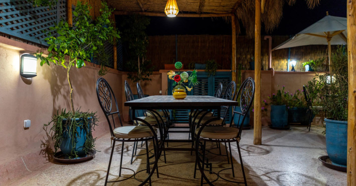 There is a 24h shuttle service between the hotel and the airport (for a fee) 24h a day. The GPS-verified aparthotel Riad Ambre et Jasmin has a reception (check-in is possible around the clock), Wi-Fi (for a fee), parking spaces (limited and for a fee) as well as a TV lounge with satellite TV. Furthermore, you can relax outdoors on the roof terrace. In addition, the hotel Riad Ambre et Jasmin is video-monitored 24h a day. For very young guests, cots can also be provided. For your comfort there is a concierge service. If necessary, you can contact the medical centre (for a fee). The energy supply is 220 Volts. For conventions and other business meetings, the hotel offers an auditorium with printer. At the reception, tickets are offered for excursions in the area. For guests on their honeymoon, the hotel has special offers such as a romantically-decorated room, personalised rooms/articles, rooms with a particularly romantic location and view, romantic dishes in the restaurant, champagne, sparkling wine, a present, a basket of fruit or flowers in the room. In your hotel, a lot of focus is placed on sustainability. This includes among others organic food and ecological meals. American Express, Euro/Master Card and JCB are accepted as means of payment. Catering As catering services the hotel offers all-inclusive light, half board, half board plus and breakfast only. Breakfast is offered continental. Enjoy your lunch as a set meal or à la carte. Dinner is served as a set meal. In the gastronomic area calorie-reduced, also vegetarian and gluten-free dishes are served. The drinks menu of the hotel includes water, soft drinks, coffee and tea, beer and wine. During your stay you can take part in the cooking classes offered by the hotel (extra fee). Sports & Leisure The wellness area offers massages (extra fee). Additional information This hotel is gay-friendly. The hotel staff speak English, French and Arabic.