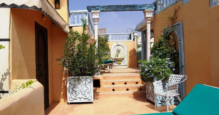 Riad Armelle serves traditional Moroccan cuisine for lunch and dinner that can be served on the terrace.