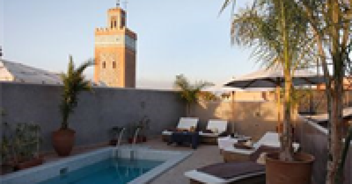This Riad is located in the south of the Marrakesh medina, in the Kasbah district. So it is next to the Royal Palace, the Saadian Tombs, and it is situated near the Bahia and Badi palaces. The guesthouse is composed of 6 bedrooms which are very different ones from the others, but all are equipped in the same way. At the ground floor, you will be able to enjoy the Spa space composed of a hammam and a massage room. The luminous patio opens onto a glassed-in dining room where you will be able to savour the sunny dishes of our cook. At the first floor, the open lounge will allow you to relax in front of the sculpted concrete chimney after a bustling day in the souks. At last, the terrace, composed of 2 levels, will allow you, depending on the brightness, to enjoy the solarium space or the small tents admiring the Atlas Mountains and the storks.This Riad is located in the south of the Marrakesh medina, in the Kasbah district. So it is next to the Royal Palace, the Saadian Tombs, and it is situated near the Bahia and Badi palaces. The guesthouse is composed of 6 bedrooms which are very different ones from the others, but all are equipped in the same way. At the ground floor, you will be able to enjoy the Spa space composed of a hammam and a massage room. The luminous patio opens onto a glassed-in dining room where you will be able to savour the sunny dishes of our cook. At the first floor, the open lounge will allow you to relax in front of the sculpted concrete chimney after a bustling day in the souks. At last, the terrace, composed of 2 levels, will allow you, depending on the brightness, to enjoy the solarium space or the small tents admiring the Atlas Mountains and the storks.