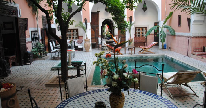 There is a 24h shuttle between the hotel and the airport 24h a day. The hotel Riad Barroko is equipped with a 24h reception, Wi-Fi, internet access as well as parking spaces. In the outdoor area you will find a pool (open all year), where sun loungers are available for free. Furthermore, you can relax outdoors on the sun terrace. Inside the hotel you can use an indoor pool. You can store your valuables in the safe, and your luggage in the hotel`s storage room. For your entertainment, the hotel offers a library/reading room. For very young guests, cots can also be provided. To clean your clothes there is a laundry service. For your comfort there is a concierge service. Smoking is permitted in the hotel. Catering The drinks menu of the hotel includes water and soft drinks. Sports & Leisure The wellness area offers massages.There is a 24h shuttle between the hotel and the airport 24h a day. The hotel Riad Barroko is equipped with a 24h reception, Wi-Fi, internet access as well as parking spaces. In the outdoor area you will find a pool (open all year), where sun loungers are available for free. Furthermore, you can relax outdoors on the sun terrace. Inside the hotel you can use an indoor pool. You can store your valuables in the safe, and your luggage in the hotel`s storage room. For your entertainment, the hotel offers a library/reading room. For very young guests, cots can also be provided. To clean your clothes there is a laundry service. For your comfort there is a concierge service. Smoking is permitted in the hotel. Catering The drinks menu of the hotel includes water and soft drinks. Sports & Leisure The wellness area offers massages.