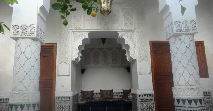 This traditional Moroccan riad in the heart of Marrakech is just a 5-minute walk from the famous Jmaa El Fna market, in a typical historical area. The traditional exterior of the building is surprisingly combined with furniture from different times and styles, so guests can experience the typical feel of Morocco with a modern twist. After an exciting day or as part of the exploration of the local culture and customs guests can try the hamam or enjoy a refreshing drink in the lush patio by fountain. In the heat of the day, they can take a dip in the pool or admire the views of the medina from the panoramic terrace. Guests do not have to look far for a delicious dinner – the restaurant of the hotel serves a variety of Moroccan and Mediterranean dishes to satisfy every taste.This traditional Moroccan riad in the heart of Marrakech is just a 5-minute walk from the famous Jmaa El Fna market, in a typical historical area. The traditional exterior of the building is surprisingly combined with furniture from different times and styles, so guests can experience the typical feel of Morocco with a modern twist. After an exciting day or as part of the exploration of the local culture and customs guests can try the hamam or enjoy a refreshing drink in the lush patio by fountain. In the heat of the day, they can take a dip in the pool or admire the views of the medina from the panoramic terrace. Guests do not have to look far for a delicious dinner – the restaurant of the hotel serves a variety of Moroccan and Mediterranean dishes to satisfy every taste.