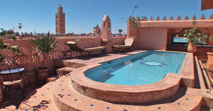 This ancient 18th century riad is situated close to the Bab Laksour, also known as The Gate of Palaces. Guests will be conveniently situated near the Koutoubia Mosque, with the famous Jemaa El Fna square only a 5 minute walk away. Majorel Gardens and Bahia Palace are both around 5 minutes away using public transport. Built in 1800, this charming, family-friendly historical hotel offers rooftop terrace with a panoramic view of the Koutoubia Mosque and the Atlas Mountains. Guests will find the peaceful atmosphere in their well-appointed rooms very welcoming. Those who enjoy soaking up the sun can do so beside to the outdoor swimming pool on the rooftop. A delightful dining experience awaits guests, as the main restaurant is out on the patio, where guests will be served their breakfast in tents, which are heated in winter.This ancient 18th century riad is situated close to the Bab Laksour, also known as The Gate of Palaces. Guests will be conveniently situated near the Koutoubia Mosque, with the famous Jemaa El Fna square only a 5 minute walk away. Majorel Gardens and Bahia Palace are both around 5 minutes away using public transport. Built in 1800, this charming, family-friendly historical hotel offers rooftop terrace with a panoramic view of the Koutoubia Mosque and the Atlas Mountains. Guests will find the peaceful atmosphere in their well-appointed rooms very welcoming. Those who enjoy soaking up the sun can do so beside to the outdoor swimming pool on the rooftop. A delightful dining experience awaits guests, as the main restaurant is out on the patio, where guests will be served their breakfast in tents, which are heated in winter.