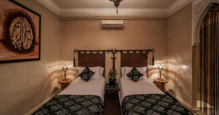 Toate camerele sunt decorate in stil tradițional marocan și au aer condiționat și dulap. Baia privată este dotată cu dus.