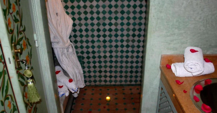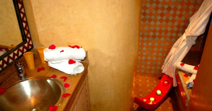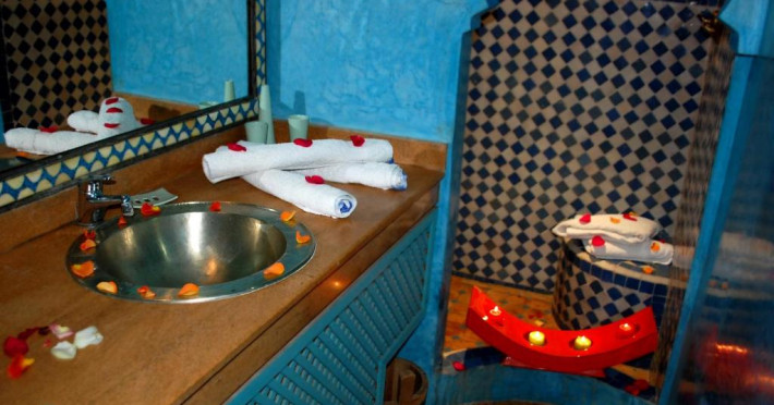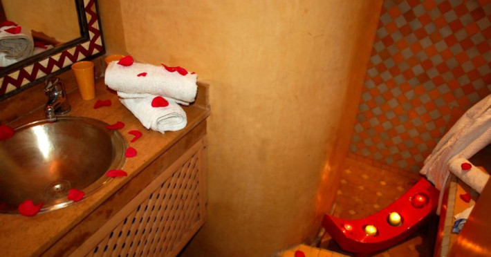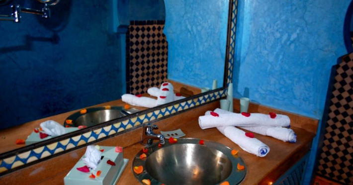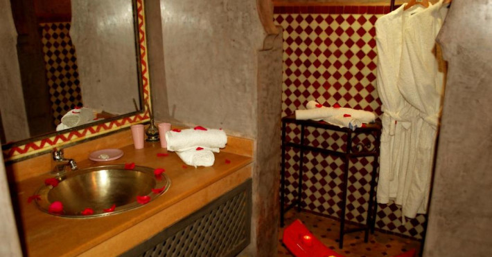 Rooms are complete with a private bathroom, while some units at the riad also feature a seating area.