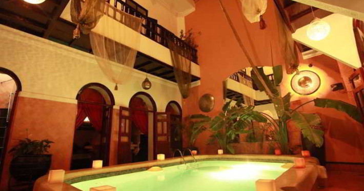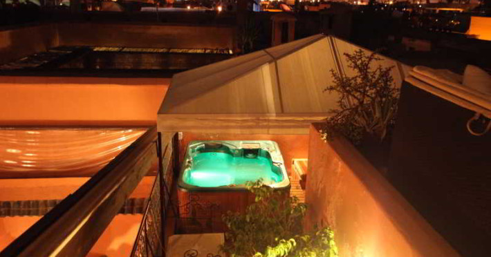 Situated in the centre of the Medina, this small charming Riad is close to the Bahia palace, only 6 minutes from the Jama El Fna Square.The Riad El Grably has everything to make your stay comfortable and memorable. The air-conditioned guestrooms are decorated in typical Moroccan style and are equipped with a modern en suite facilities.To relax, the Grably offers 2 patios, a swimming pool (heated during school holidays), a garden, a fountain, tables and deckchairs where you can read a book or enjoy the sunshine.There is also a roof terrace with a hot tub giving magnificent views of the Medina which helps make the Riad El Grably unforgettable for its comfort and tranquillity.Situated in the centre of the Medina, this small charming Riad is close to the Bahia palace, only 6 minutes from the Jama El Fna Square.The Riad El Grably has everything to make your stay comfortable and memorable. The air-conditioned guestrooms are decorated in typical Moroccan style and are equipped with a modern en suite facilities.To relax, the Grably offers 2 patios, a swimming pool (heated during school holidays), a garden, a fountain, tables and deckchairs where you can read a book or enjoy the sunshine.There is also a roof terrace with a hot tub giving magnificent views of the Medina which helps make the Riad El Grably unforgettable for its comfort and tranquillity.