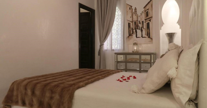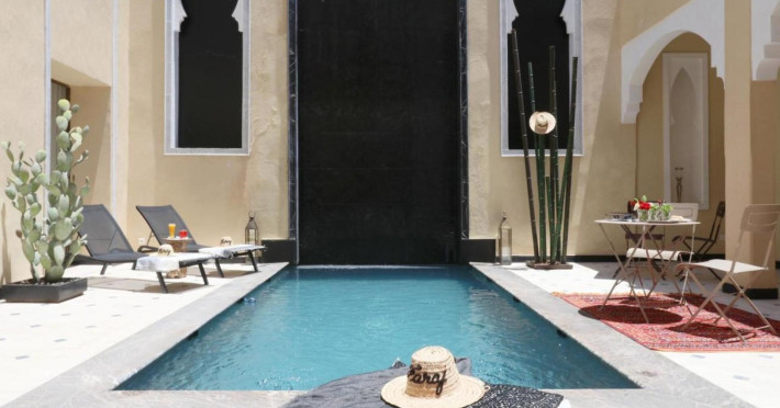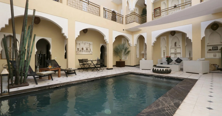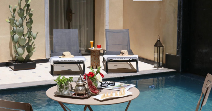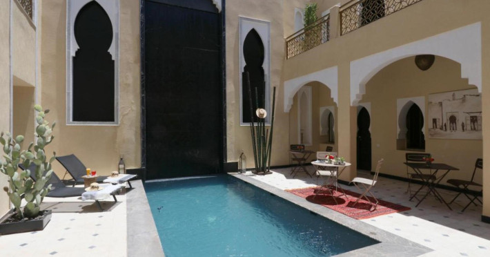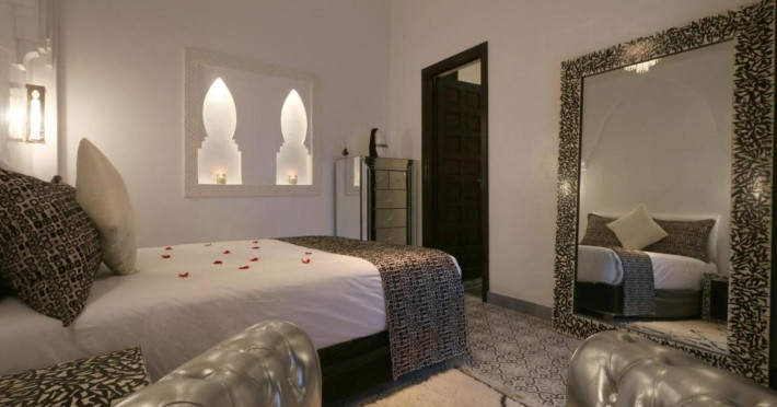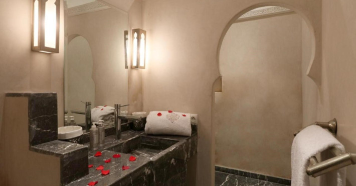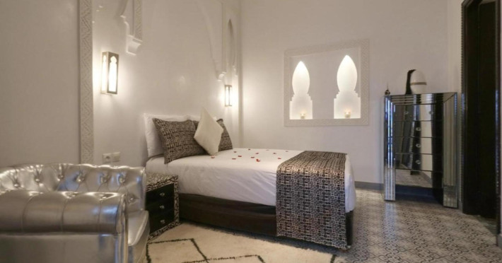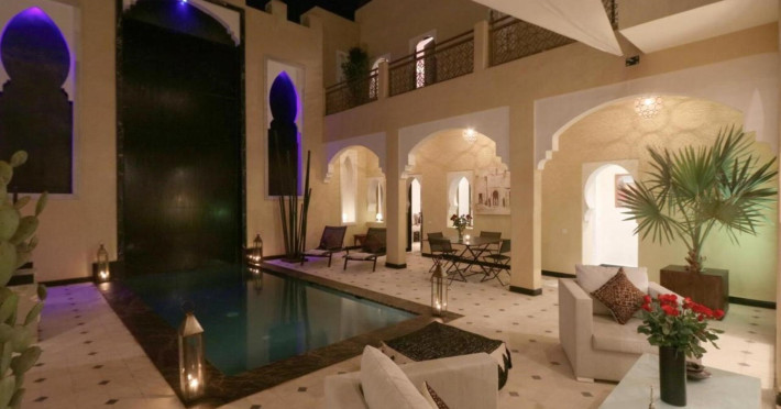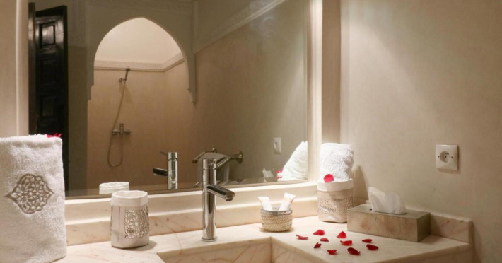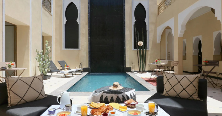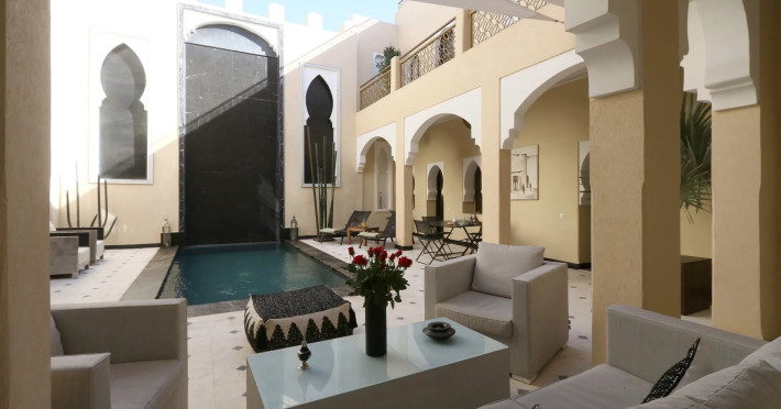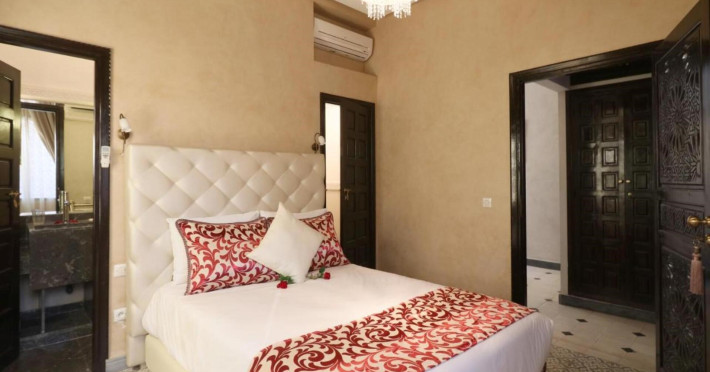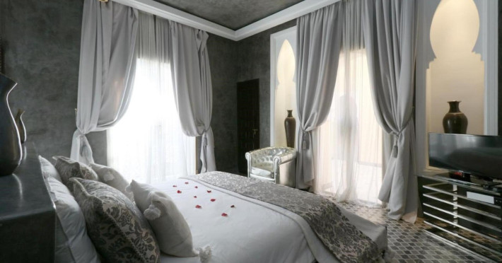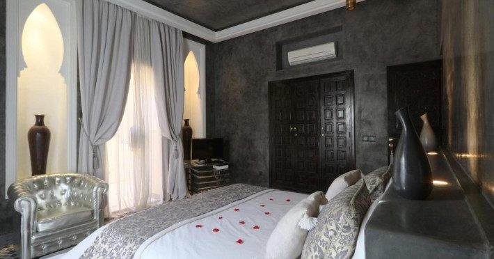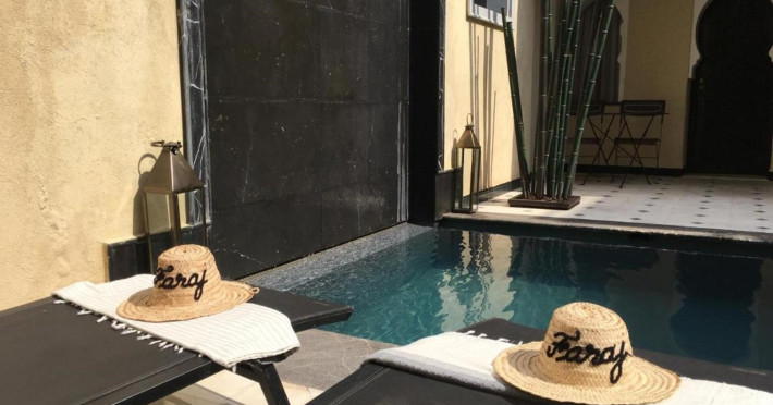 There is a 24h shuttle between the hotel and the airport 24h a day. The beach at your holiday destination is patrolled by a lifeguard. Here, there are sun loungers, sun umbrellas and beach towels available. Cold drinks are served at the bar on the beach. To reach the beach a shuttle is provided. The air-conditioned, GPS-verified halal hotel Riad Faraj and Spa has a 24h reception (check-in is possible around the clock), a lobby bar, Wi-Fi, internet access, a supermarket and other shops, a boutique, a hairdresser, a jacuzzi, showers and changing rooms, a first aid kit, parking spaces (limited) as well as a TV lounge with satellite TV. In the outdoor area you will find a garden as well as a supervised pool (open all year), where sun loungers, sun umbrellas and pool towels are available for free. There is also a separate children's pool with a non-swimming area as well as a water slide (type open slide). Furthermore, you can relax outdoors on the building`s rooftop terrace. Inside the hotel you can use an indoor pool. You can store your valuables in the safe, and your luggage in the hotel`s storage room. In addition, the hotel Riad Faraj and Spa is video-monitored 24h a day. For your entertainment, the hotel offers a library/reading room and a theatre. For very young guests, cots can also be provided. There is also a laundry and ironing service. Ironing equipment can also be borrowed at the hotel. For your comfort, in addition to the concierge service the hotel page will ensure you are looked after. For conventions and other business meetings, the hotel offers a business centre with a reception, printer, overhead projector as well as a catering and translation service. A photographer can also be ordered from the hotel for business events. If you want to explore the holiday region, you can use the car rental service close to the hotel. In addition, the hotel sells tickets for excursions. Pets are allowed on the hotel (only dogs and cats, on request). For guests on their honeymoon, the hotel has special offers such as special honeymoon packages. In your hotel, a lot of focus is placed on sustainability. This includes the provision of soap, shampoo and lotion dispensers, organic food and ecological meals and a central room air-conditioning. That is why the hotel Riad Faraj and Spa was also awarded a sustainability certificate. For water, electricity, gas and a club card may incur extra charges at the hotel. The hotel requires that all guests pay a deposit upon arrival. American Express, Euro/Master Card, JCB and EC cards are accepted as means of payment. Due to its barrier-free facilities , such as barrier-free entrances, wheelchair accessible rooms and wheelchair-accessible bathrooms, the hotel is also suitable for wheelchair users. Catering As catering services the hotel offers all-inclusive, all-inclusive light, half board, half board plus, breakfast only and self-catering. Breakfast is offered American, continental, from the buffet or à la carte (extras on request). Enjoy your lunch from the buffet, as a set meal or à la carte with starters, salads and desserts (extras on request). Dinner is also served as a buffet, as a set meal or à la carte with starters, salads and desserts (extras on request). Half board includes breakfast, lunch and dinner. When booking half board plus, breakfast, lunch, dinner, beverages during meals and selected imported spirits (limited) are included. When booking all-inclusive, one welcome drink and one meal in the à la carte restaurant are included. As part of the all-inclusive service, water (24h) is available around the clock and at no extra charge. For the meals, there are a buffet restaurant with terrace (Italian, Mediterranean, calorie-reduced, gluten-free and vegetarian dishes) and the cafeteria, a 24h snackbar, the pool bar as well as a sky bar. The drinks menu of the hotel includes water, soft drinks, coffee and tea, beer, wine and 24h international alcoholic beverages. A picnic bench can be used by guests for self-catering. Appropriate clothing is required for lunch and dinner. During your stay you can take part in the cooking classes offered by the hotel. Sports & Leisure For cyclists there is a storage room. A sauna awaits you in the wellness area. The hotel also offers massages, beauty treatments and thalassotherapies. Let yourself be pampered in the Hamam and find peace and quiet in the relaxation room. Spend some healthy and relaxing hours with hay baths, hydrotherapy as well as rose petal baths. Your little ones are in good hands with the hotel`s babysitter service. There is a youth club at the hotel. In terms of adult entertainment, evening shows and live music are presented and there is a games room available to use. Additional information Larger groups of young people under the age of 25 are not allowed in this property, as this is a hotel especially for families. This hotel is gay-friendly. The hotel staff speak English, German, French, Italian, Spanish, Arabic and Portuguese.There is a 24h shuttle between the hotel and the airport 24h a day. The beach at your holiday destination is patrolled by a lifeguard. Here, there are sun loungers, sun umbrellas and beach towels available. Cold drinks are served at the bar on the beach. To reach the beach a shuttle is provided. The air-conditioned, GPS-verified halal hotel Riad Faraj and Spa has a 24h reception (check-in is possible around the clock), a lobby bar, Wi-Fi, internet access, a supermarket and other shops, a boutique, a hairdresser, a jacuzzi, showers and changing rooms, a first aid kit, parking spaces (limited) as well as a TV lounge with satellite TV. In the outdoor area you will find a garden as well as a supervised pool (open all year), where sun loungers, sun umbrellas and pool towels are available for free. There is also a separate children's pool with a non-swimming area as well as a water slide (type open slide). Furthermore, you can relax outdoors on the building`s rooftop terrace