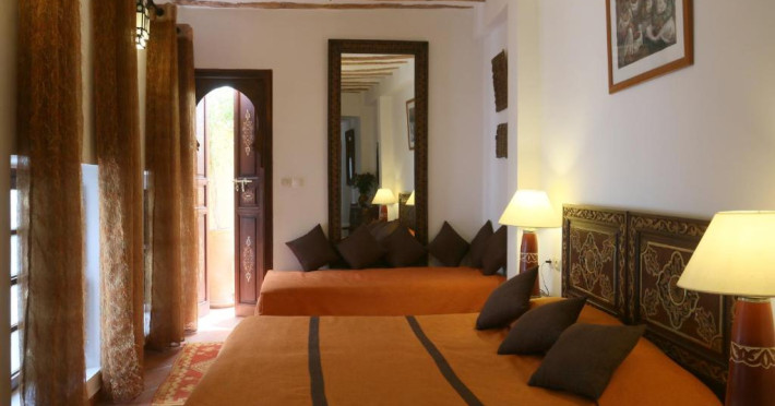 Karmela's restaurant serves traditional Morrocan cuisine accompanied by local wines, and a daily breakfast. Meals can be enjoyed on the large roof-top terrace.