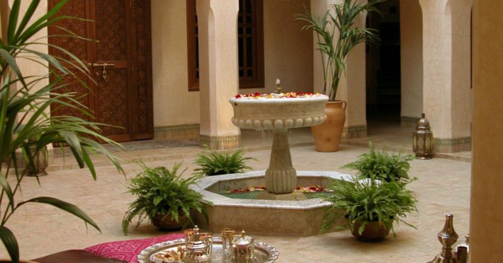 Riad Kniza is an upscale small luxury 'Hotel de Charme' completely restored by the owner Mr. M. Bouskri. It is located only few minutes walk from the famous square Jemaa El Fna and the fabulous souks of Marrakech and the most important cultural treasures and historic sites of the imperial city. The best craftsmen of Marrakech have contributed to make of this very special guest house a real Oasis of calm, charm, refinement and warmth, tastefully decorated in the purest refined Moroccan style, by the owner Mr Bouskri, who, besides being one of the most renowned antiques' dealers in Marrakech, has been a professional guide for the past 34 years and has shown the best of Marrakech to many VIPs and Celebrities including several Presidents. Mr. Bouskri will be more than delighted to share his extensive knowledge of the city and the country. His tips will be very valuable to get the best of Marrakech. Riad Kniza is a luxury Riad built around two open sky patios with water fountains and offers two Lounges with magnifRiad Kniza (Morocco)Riad Kniza features seven tastefully decorated rooms and suites, which are equipped with satellite TV - air conditioning, bathroom with independent toilets, safe, direct phone and Internet access. Some of the rooms have fireplace.Riad Kniza is an upscale small luxury 'Hotel de Charme' completely restored by the owner Mr. M. Bouskri. It is located only few minutes walk from the famous square Jemaa El Fna and the fabulous souks of Marrakech and the most important cultural treasures and historic sites of the imperial city. The best craftsmen of Marrakech have contributed to make of this very special guest house a real Oasis of calm, charm, refinement and warmth, tastefully decorated in the purest refined Moroccan style, by the owner Mr Bouskri, who, besides being one of the most renowned antiques' dealers in Marrakech, has been a professional guide for the past 34 years and has shown the best of Marrakech to many VIPs and Celebrities including several Presidents. Mr. Bouskri will be more than delighted to share his extensive knowledge of the city and the country. His tips will be very valuable to get the best of Marrakech. Riad Kniza is a luxury Riad built around two open sky patios with water fountains and offers two Lounges with magnifRiad Kniza (Morocco)Riad Kniza features seven tastefully decorated rooms and suites, which are equipped with satellite TV - air conditioning, bathroom with independent toilets, safe, direct phone and Internet access. Some of the rooms have fireplace.