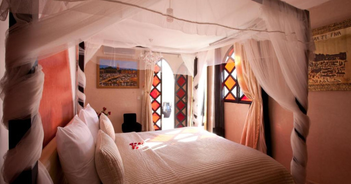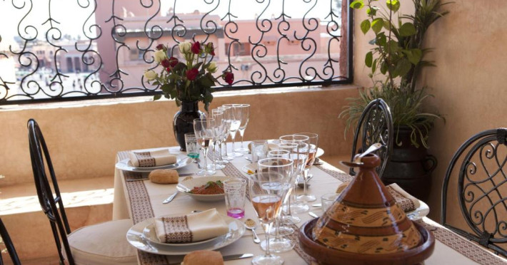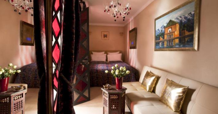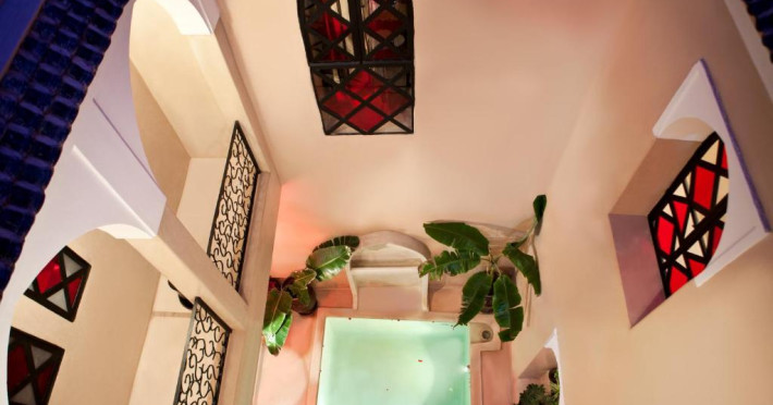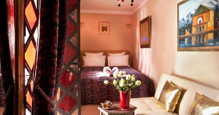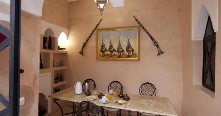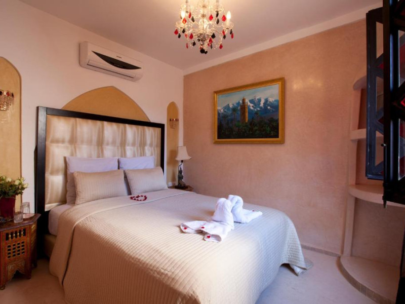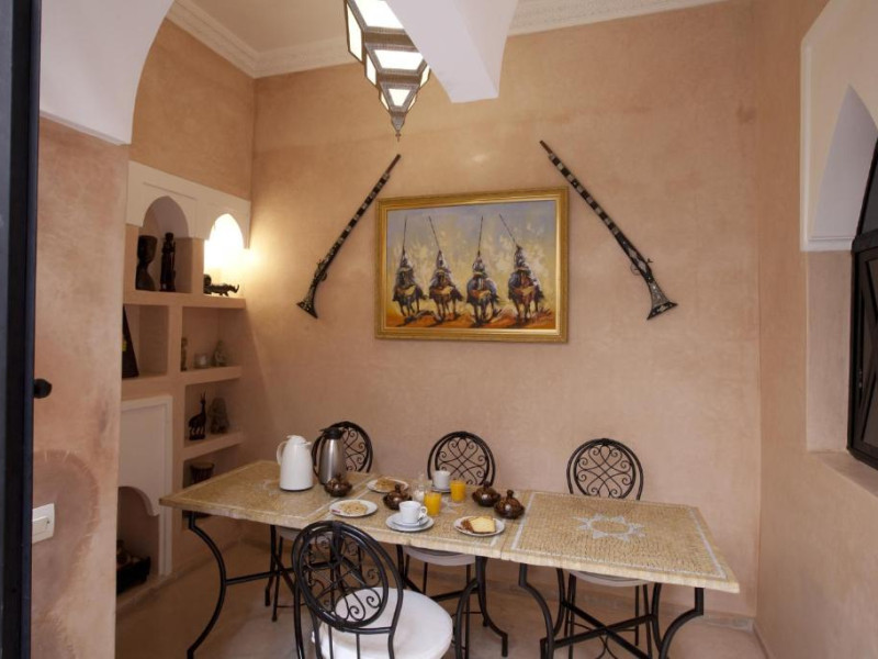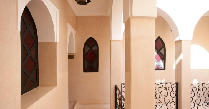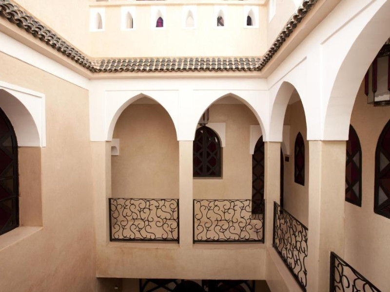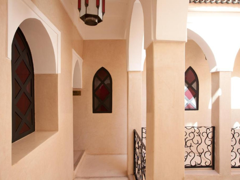 Camerele și suitele, decorate cu mozaicuri tradiționale și mobilier artizanal, se deschid către curtea interioară cu piscină. Terasa de pe acoperiș oferă priveliști panoramice asupra orașului vechi și a Munților Atlas, fiind locul perfect pentru micul dejun tradițional marocan sau pentru relaxare la apus.