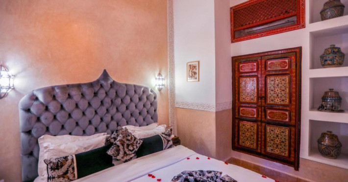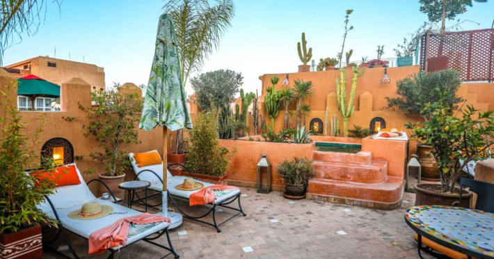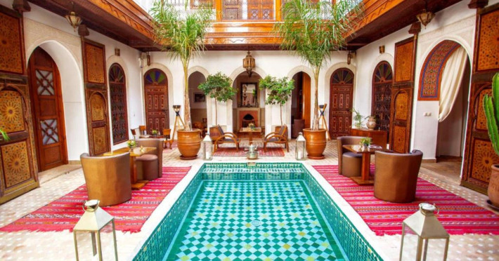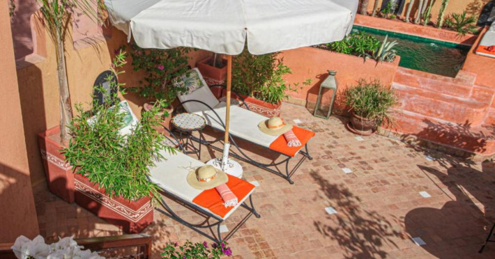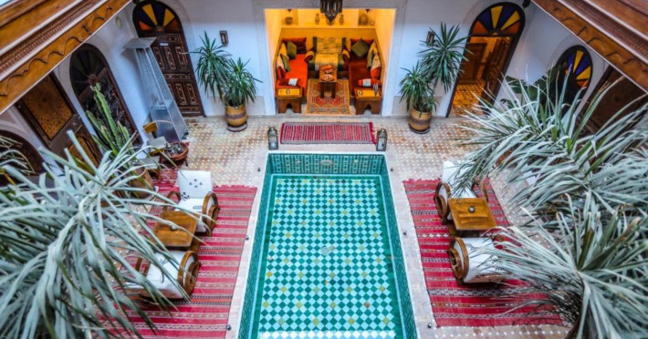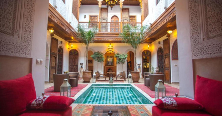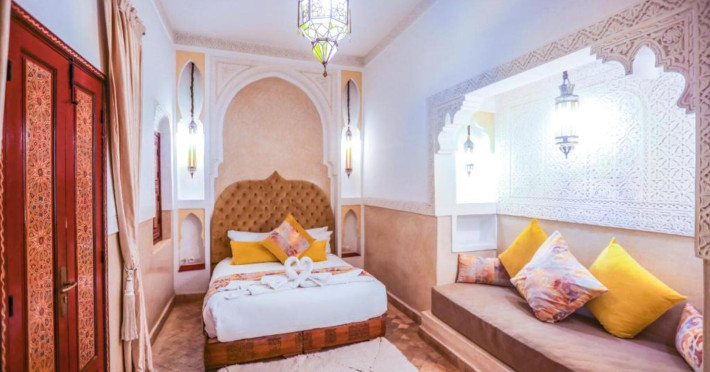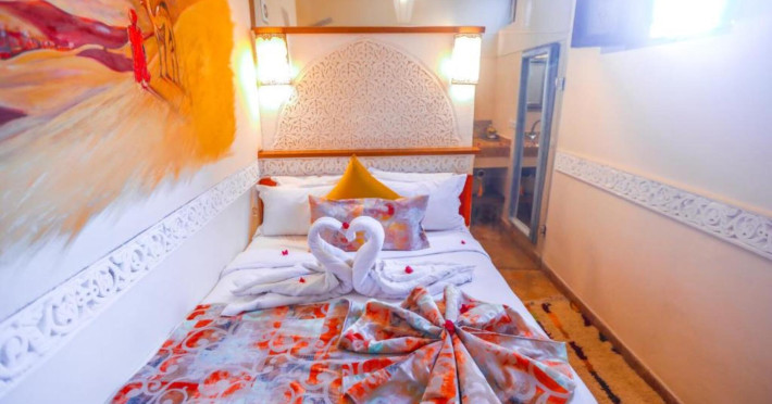 There is a 24h shuttle service between the hotel and the airport (for a fee) 24h a day. The hotel Riad Melhoun & Spa is equipped with a 24h reception, a lobby, Wi-Fi (for a fee), a hairdresser as well as a first aid kit. In the outdoor area of the property you will find a seasonally heated pool. Inside the hotel you can use an indoor pool. Kid`s chairs are available. You can store your luggage in the hotel's storage room. There is also a laundry and ironing service. For your comfort there is a concierge service. The energy supply is 120 Volts. If you want to explore the holiday region, you can use the car rental service close to the hotel. For guests on their honeymoon, the hotel has special offers such as flowers in the room. In your hotel, a lot of focus is placed on sustainability. This includes among others ecological meals. Euro/Master Card and Visa are accepted as means of payment. Catering As catering services the hotel offers half board and full board. Breakfast is offered continental. Enjoy your lunch as a set meal or à la carte. Dinner is served à la carte. When booking all-inclusive, one welcome drink and one meal in the à la carte restaurant are included. As part of the all-inclusive service, cakes and pastries (24h) are available around the clock and at no extra charge. For the meals, there are a restaurant (calorie-reduced and vegetarian dishes) and the cafeteria. The drinks menu of the hotel includes coffee and tea, beer and wine. Sports & Leisure For your wellbeing the hotel also offers massages (extra fee). Additional information This hotel is gay-friendly. The hotel staff speak English, French, Spanish and Arabic.There is a 24h shuttle service between the hotel and the airport (for a fee) 24h a day. The hotel Riad Melhoun & Spa is equipped with a 24h reception, a lobby, Wi-Fi (for a fee), a hairdresser as well as a first aid kit. In the outdoor area of the property you will find a seasonally heated pool. Inside the hotel you can use an indoor pool. Kid`s chairs are available. You can store your luggage in the hotel's storage room. There is also a laundry and ironing service. For your comfort there is a concierge service. The energy supply is 120 Volts. If you want to explore the holiday region, you can use the car rental service close to the hotel. For guests on their honeymoon, the hotel has special offers such as flowers in the room. In your hotel, a lot of focus is placed on sustainability. This includes among others ecological meals. Euro/Master Card and Visa are accepted as means of payment. Catering As catering services the hotel offers half board and full board. Breakfast is offered continental. Enjoy your lunch as a set meal or à la carte. Dinner is served à la carte. When booking all-inclusive, one welcome drink and one meal in the à la carte restaurant are included. As part of the all-inclusive service, cakes and pastries (24h) are available around the clock and at no extra charge. For the meals, there are a restaurant (calorie-reduced and vegetarian dishes) and the cafeteria. The drinks menu of the hotel includes coffee and tea, beer and wine. Sports & Leisure For your wellbeing the hotel also offers massages (extra fee). Additional information This hotel is gay-friendly. The hotel staff speak English, French, Spanish and Arabic.