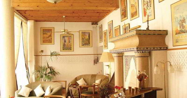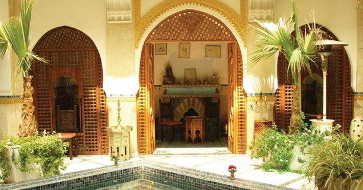 The hotel was originally constructed in the 1930s and discerningly and artistically restored in 1997 by Didier Vicaire, with particular attention given to Moroccan architecture and furnishings. Made up of two adjoining and interconnecting Riads, the original Delacroix wing and the newly completed Matisse wing each offer four air-conditioned rooms, and the Delacroix wing also features a suite. The reception, lounge areas and dining rooms surround the central courtyards, which have been restored in traditional zelige (mosaic) and tadlakt (plasterwork), carved wood and other Arabesque materials. Further facilities on offer here include a bar, a conference room, a games room, a TV room and a restaurant. Guests may also make use of the room service, and those arriving by car may take advantage of the car park.The hotel was originally constructed in the 1930s and discerningly and artistically restored in 1997 by Didier Vicaire, with particular attention given to Moroccan architecture and furnishings. Made up of two adjoining and interconnecting Riads, the original Delacroix wing and the newly completed Matisse wing each offer four air-conditioned rooms, and the Delacroix wing also features a suite. The reception, lounge areas and dining rooms surround the central courtyards, which have been restored in traditional zelige (mosaic) and tadlakt (plasterwork), carved wood and other Arabesque materials. Further facilities on offer here include a bar, a conference room, a games room, a TV room and a restaurant. Guests may also make use of the room service, and those arriving by car may take advantage of the car park.