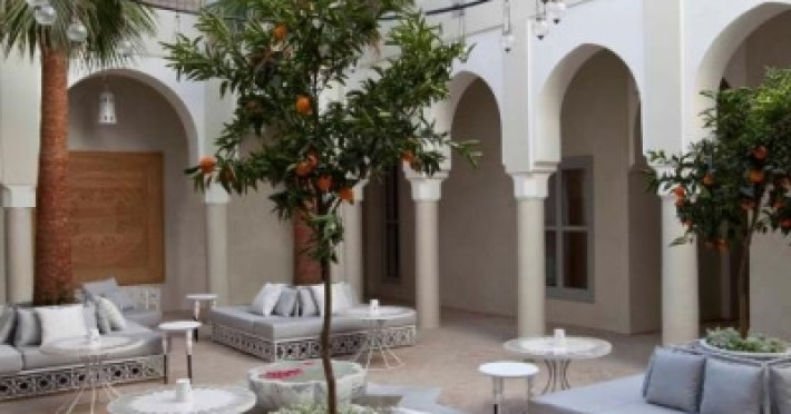 The hotel Riad Nashira & SPA is located around 1 km from the city centre. There is a shuttle between the hotel and the airport (for a fee). The air-conditioned, GPS-verified hotel has a reception (check-in is possible around the clock), Wi-Fi, internet access, a lift, a jacuzzi, parking spaces as well as a TV lounge with satellite TV. Furthermore, you can relax outdoors on the sun terrace. Your valuables can be stored in the hotel safe. For your entertainment, the hotel offers a library/reading room and a disco. Kid`s chairs are available. There is also a laundry service available at an additional cost to customers. For your comfort there is a concierge service. The energy supply is 240 Volts. For guests on their honeymoon, the hotel has special offers such as personalised rooms/articles, romantic dishes in the restaurant or a basket of fruit in the room. Euro/Master Card is accepted as means of payment. Due to its barrier-free facilities , such as barrier-free entrances, wheelchair accessible rooms and wheelchair-accessible bathrooms, the hotel is also suitable for wheelchair users. Catering As catering services the hotel offers full board. Enjoy your lunch as a set meal. Dinner is served as a set meal or à la carte. All Inclusive Light includes coffee & tea. For the meals, there are a restaurant and a bar as well as the cafeteria. The drinks menu of the hotel includes water and coffee and tea. You can take part in the cooking classes offered by the hotel during your stay. Distances- Airport: approximately at 7 km