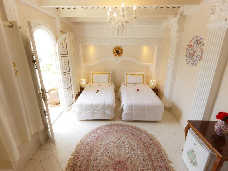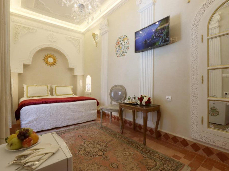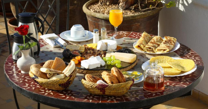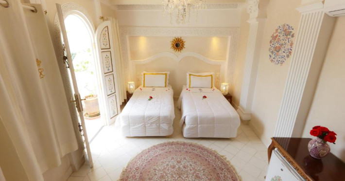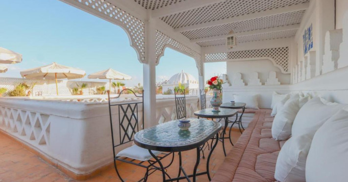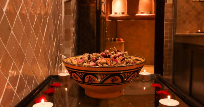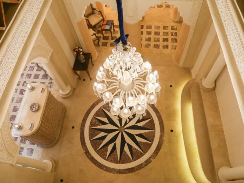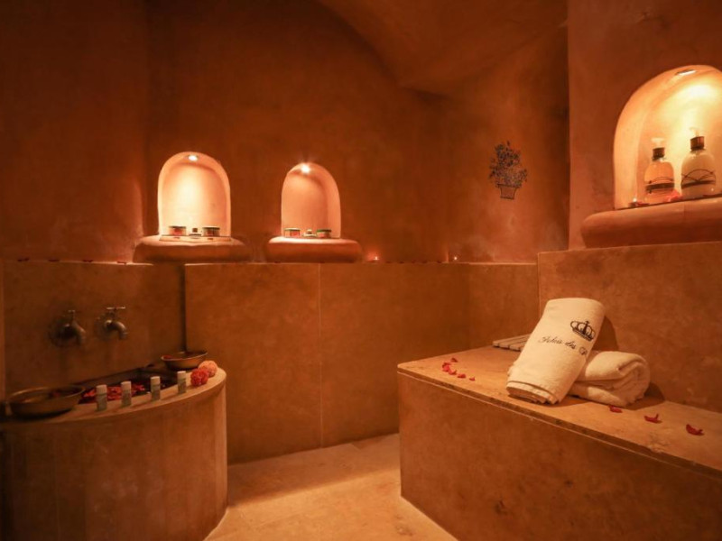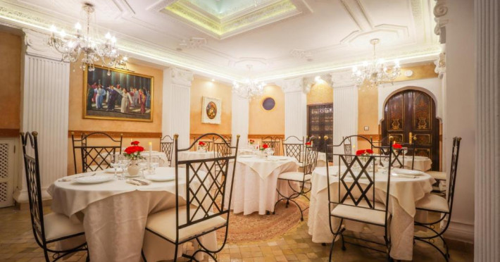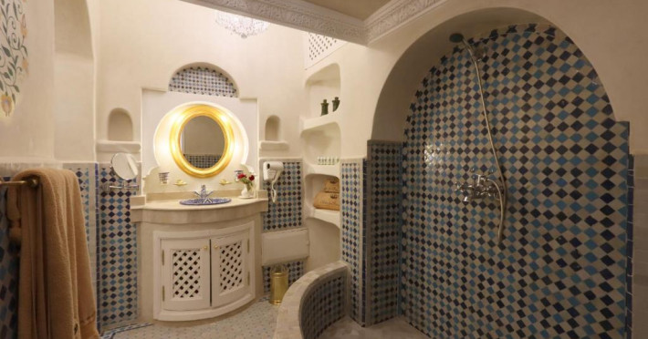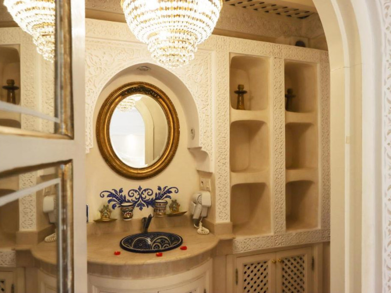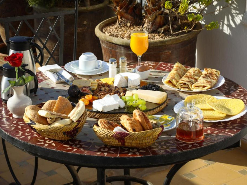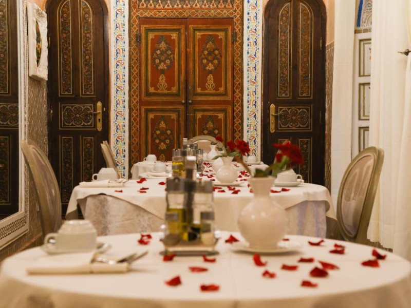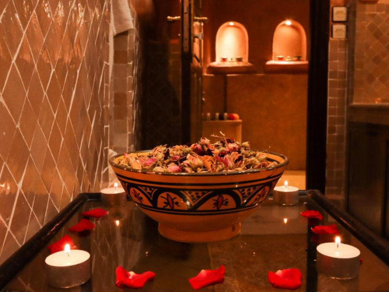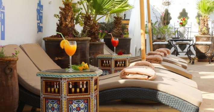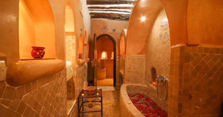 Camerele și suitele, decorate cu mozaicuri tradiționale și mobilier artizanal, păstrează farmecul arhitecturii locale. Facilitățile principale includ un spa cu hammam tradițional, o terasă pe acoperiș cu vedere panoramică asupra orașului vechi și a Munților Atlas, precum și un restaurant care servește specialități marocane autentice.