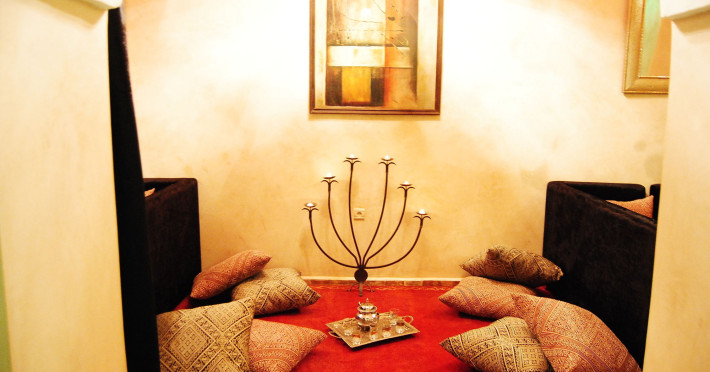 This cosy riad can be found in Marrakech. This cosy establishment guarantees a quiet stay as it counts with just 6 rooms. The premises are housed in a building dating back to 17th century but have been fully refurbished in 2015. An oasis of tranquillity and comfort, the Riad provides a home-from-home experience. It has six rooms, each combining Moroccan chic with modern style.Guests can relax in the large, welcoming lounge area witha tv & its romantic fireplace. Or, laze on the sunbeds on the roof-top garden, where they can glimpse the fascinating medina and spectacular Atlas mountains.Riad Romantic's big swimming pool is the perfect antidote to the heat. Surrounded by beautiful green plants, the pool is in a peaceful, relaxing environment.This cosy riad can be found in Marrakech. This cosy establishment guarantees a quiet stay as it counts with just 6 rooms. The premises are housed in a building dating back to 17th century but have been fully refurbished in 2015. An oasis of tranquillity and comfort, the Riad provides a home-from-home experience. It has six rooms, each combining Moroccan chic with modern style.Guests can relax in the large, welcoming lounge area witha tv & its romantic fireplace. Or, laze on the sunbeds on the roof-top garden, where they can glimpse the fascinating medina and spectacular Atlas mountains.Riad Romantic's big swimming pool is the perfect antidote to the heat. Surrounded by beautiful green plants, the pool is in a peaceful, relaxing environment.