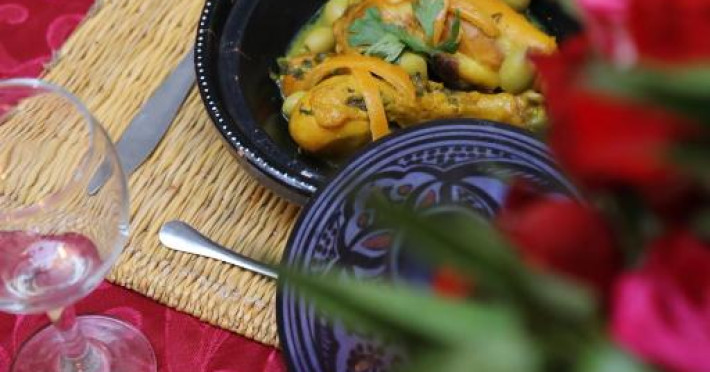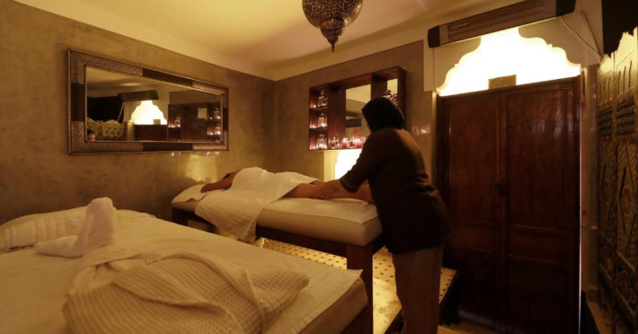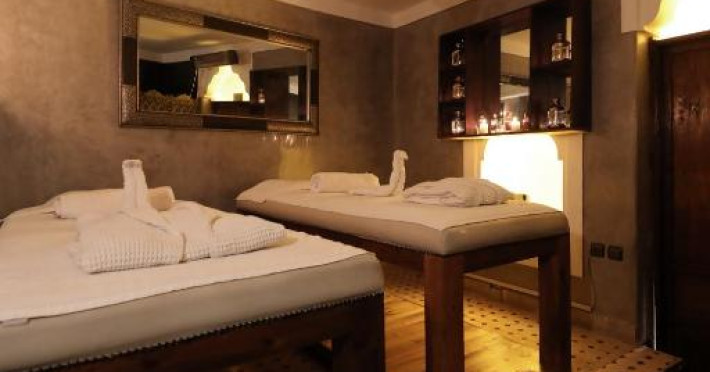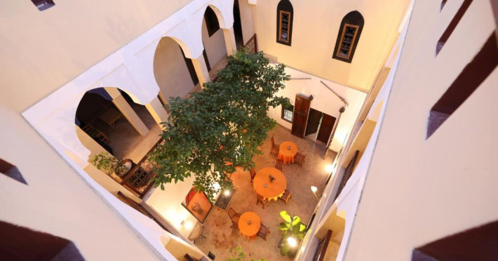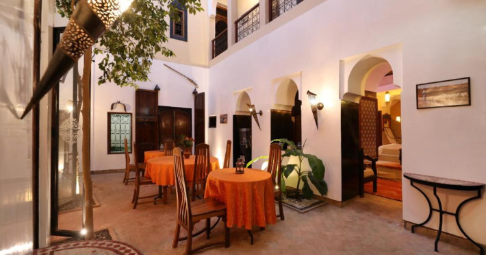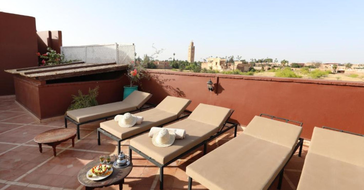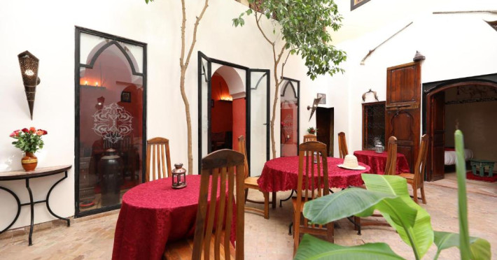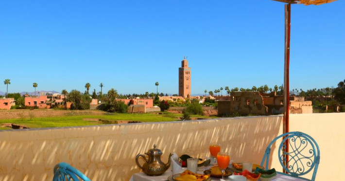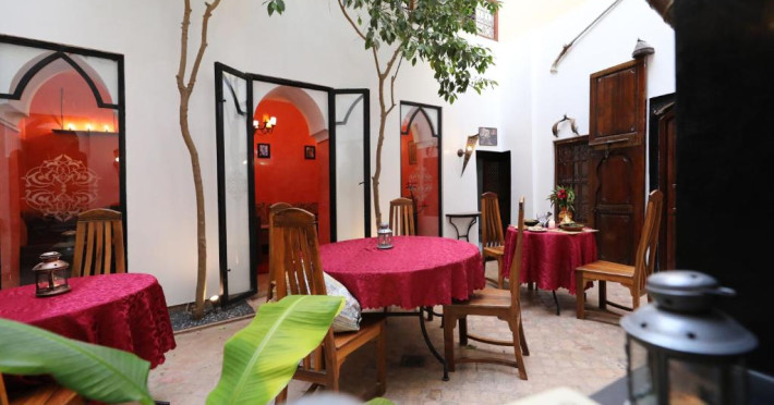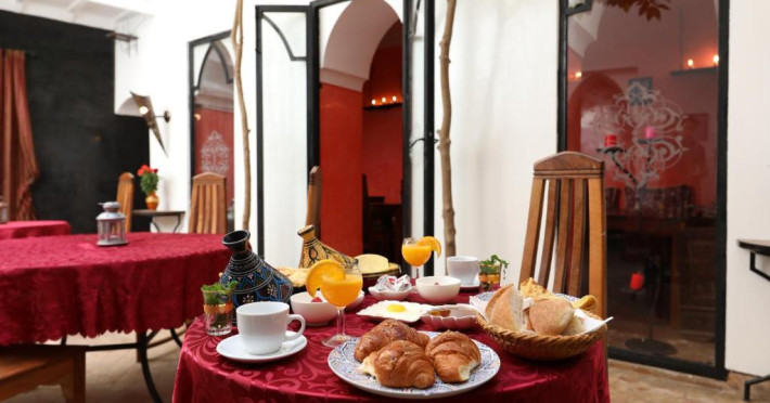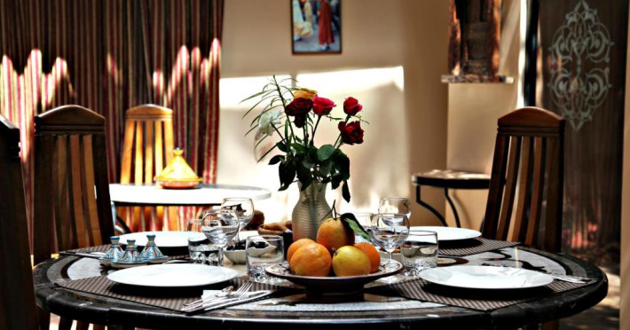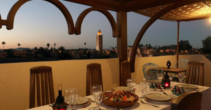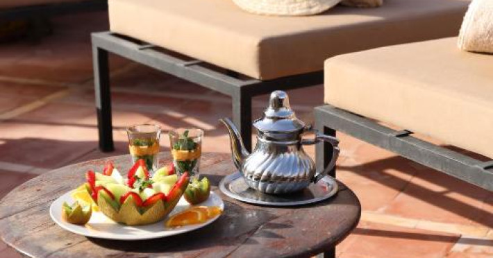 This Riad serves traditional Moroccan cuisine featuring local products from the market that guests can enjoy in the dining room or on the terrace with views Koutoubia Mosque and the Atlas Mountains.
