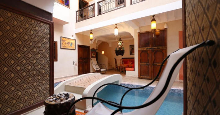 Riad Sidi Mimoune is located in the heart of Marrakech’s Medina, near the Jamaa El Fna Square. It offers a terrace with solarium, a heated indoor swimming pool and en suite rooms.