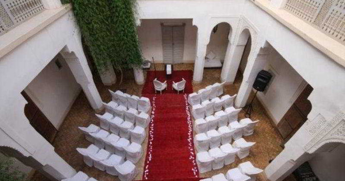 The hotel is 10 minutes walk from Djemaa el Fna square and right near the Sidi Benslimane mosque and Dar Moha restaurant. The hotel is 20 minutes from the airport.The hotel is set around three patios, one of which offers a pool with a beautiful fountain. The other patios accommodate 15 rooms decorated with passion and attention to detail. The originality of the organization makes it possible to stay in a room or to occupy a part of this splendid unit, without losing the sense of calm, peace and tranquillity. The hotel is air conditioned and offers a 24-hour reception, breakfast room and room service.Each hotel room is furnished with typical Moroccan hand-made furniture and decorated with splendid canvases. Rooms have a shower, hairdryer, double or king-size bed, tea and coffee making facilities, individually regulated air conditioning and a terrace.The riad has a 25 m² swimming pool, a hamam in tadelakt, a patio equipped with white benches, cushions and deckchairs all around the pool, and a terrace that is equipped with parasols, carpets, coffee tables, benches and cushions.The breakfast (Moroccan breakfast: tea, coffee, milk, 2 kinds of pancakes, 2 kinds of juice, bread, butter, honey, jam, egg and cheese) is served in the patio around the pool. To discover the best of Moroccan cuisine, the riad proposes a variety of traditional menus served in in the salon, the patio or on the roof-terraces.From the central square of Jamaa El Fna, have to take Fatim Ezzahra Avenue and go straight on till find an other square called Riad Larrousse, then Sidi Ben Slimane is the first quarter on the left, it is in the bottom of Derb Myara, N°8.The hotel is 10 minutes walk from Djemaa el Fna square and right near the Sidi Benslimane mosque and Dar Moha restaurant. The hotel is 20 minutes from the airport.The hotel is set around three patios, one of which offers a pool with a beautiful fountain. The other patios accommodate 15 rooms decorated with passion and attention to detail. The originality of the organization makes it possible to stay in a room or to occupy a part of this splendid unit, without losing the sense of calm, peace and tranquillity. The hotel is air conditioned and offers a 24-hour reception, breakfast room and room service.Each hotel room is furnished with typical Moroccan hand-made furniture and decorated with splendid canvases. Rooms have a shower, hairdryer, double or king-size bed, tea and coffee making facilities, individually regulated air conditioning and a terrace.The riad has a 25 m² swimming pool, a hamam in tadelakt, a patio equipped with white benches, cushions and deckchairs all around the pool, and a terrace that is equipped with parasols, carpets, coffee tables, benches and cushions.The breakfast (Moroccan breakfast: tea, coffee, milk, 2 kinds of pancakes, 2 kinds of juice, bread, butter, honey, jam, egg and cheese) is served in the patio around the pool. To discover the best of Moroccan cuisine, the riad proposes a variety of traditional menus served in in the salon, the patio or on the roof-terraces.From the central square of Jamaa El Fna, have to take Fatim Ezzahra Avenue and go straight on till find an other square called Riad Larrousse, then Sidi Ben Slimane is the first quarter on the left, it is in the bottom of Derb Myara, N°8.