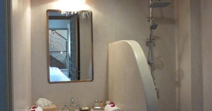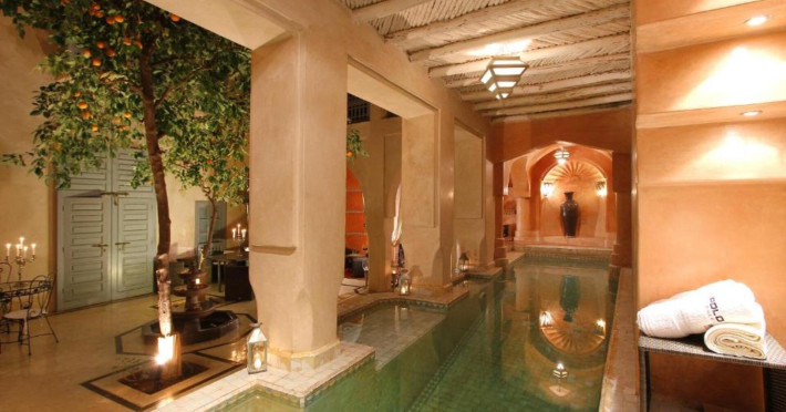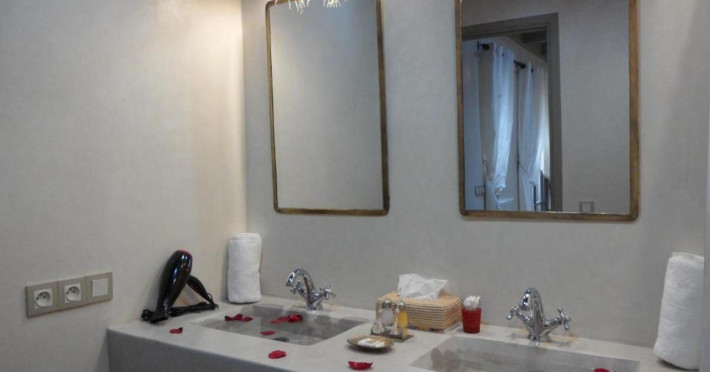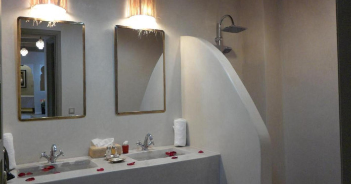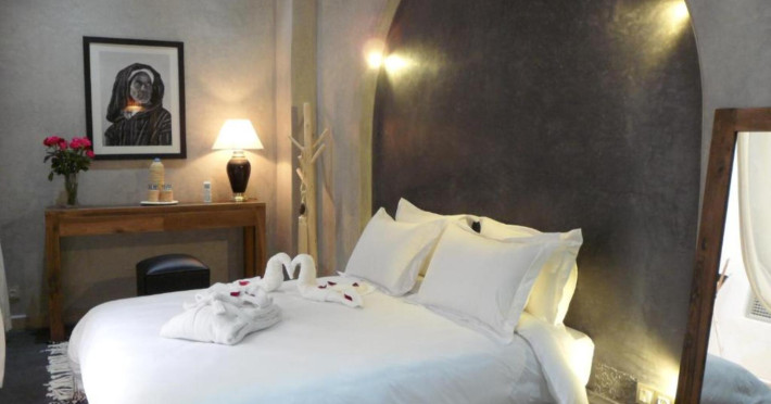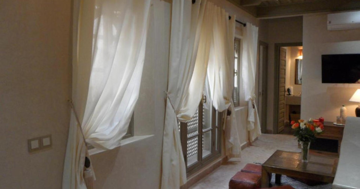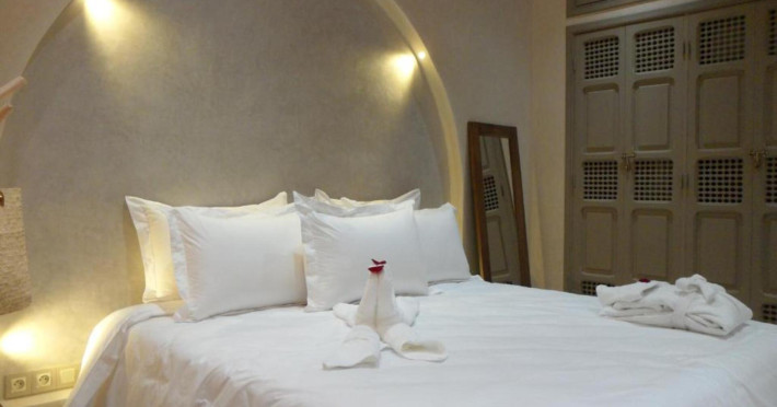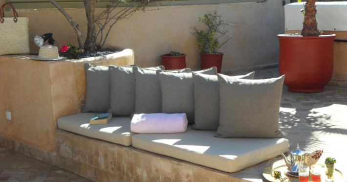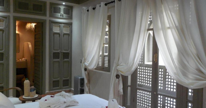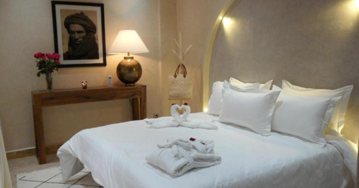The hotel Riad Et Spa Misria Les Oliviers is located very close to various restaurants and bars. The city centre is around 2 km away. Shops are right on your doorstep, a supermarket is around 1,2 km away. There is a 24h shuttle service between the hotel and the airport (for a fee) 24h a day. On the beach are sun loungers, cushions, sun umbrellas and beach towels available. To reach the beach a shuttle (for a fee) is provided. The seasonally air-conditioned halal hotel has a 24h reception (check-in is possible around the clock), a lobby, Wi-Fi, internet access, a hairdresser as well as a first aid kit. In the outdoor area of the property you will find a garden as well as a seasonally heated pool (open all year), where sun loungers, sun umbrellas and pool towels are available for free. There is also a children's pool. Furthermore, you can relax outdoors on a roof terrace. Inside the hotel you can use a heated indoor pool. Your valuables can be stored in the hotel safe. In addition, the hotel Riad Et Spa Misria Les Oliviers is video-monitored 24h a day. Highchairs and kid`s chairs are available. Cots are available for a fee. For your comfort there is a concierge service. If necessary, you can contact the medical centre at any time (for a fee). The energy supply is 220 and 230 Volts. At the hotel reception, tickets are offered for excursions in the area. For guests on their honeymoon, the hotel has special offers such as a romantically-decorated room, rooms with a particularly romantic location and view, romantic dishes in the restaurant, sparkling wine, a present, a basket of fruit or flowers in the room. In your hotel, a lot of focus is placed on sustainability. This includes the provision of soap and shampoo dispensers and a central room air-conditioning. Catering As catering services the hotel offers breakfast only. Breakfast is offered continental. Enjoy your lunch as a set meal or à la carte. Dinner is served as a buffet, as a set meal or à la carte. Half board includes breakfast. When booking all-inclusive, one welcome drink is included. As part of the all-inclusive service, water (24h) is available around the clock and at no extra charge. For the meals, there are a restaurant with terrace (gluten-free dishes) and the cafeteria as well as the pool bar. The drinks menu of the hotel includes soft drinks and wine. You can take part in the cooking classes offered by the hotel during your stay (extra fee). Distances- Discotheque: approximately at 3 km