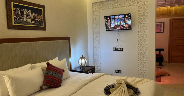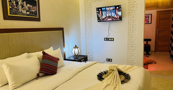 The hotel Riad Tislite & Spa is about 150 km from the airport. The air-conditioned halal hotel is equipped with a 24h reception, a lounge as well as a lobby. For the smallest children prams can be rented in the hotel. You can store your luggage in the hotel's storage room. If necessary, you can contact the medical centre. The energy supply is 220 Volts. For guests on their honeymoon, the hotel has special offers such as a romantically-decorated room, personalised rooms/articles, rooms with a particularly romantic location and view, romantic dishes in the restaurant, sparkling wine, a present, a basket of fruit or flowers in the room. In your hotel, a lot of focus is placed on sustainability. This includes among others the hotel`s own recycling bins. For water, gas and a club card may incur extra charges at the hotel. American Express is accepted as means of payment. Due to its barrier-free facilities , such as wheelchair-accessible bathrooms, the hotel is also suitable for wheelchair users. Catering As catering services the hotel offers half board, half board plus, full board and full board plus. Breakfast is offered continental or à la carte. Enjoy your lunch with starters and desserts as well as salads from the buffet or à la carte (extras on request). Dinner is served as a set meal with starters, salads and desserts. Half board includes breakfast. When booking half board plus, breakfast and selected imported spirits (limited) are included. All Inclusive Light includes international alcoholic beverages. When booking all-inclusive, one meal in the à la carte restaurant is included. As part of the all-inclusive service, coffee and tea (24h), international alcoholic beverages (24h, limited) as well as international alcoholic beverages (unlimited) are available at no extra charge. In the gastronomic area also gluten-free dishes are served. Guests are requested to wear appropriate clothing at lunch. Distances