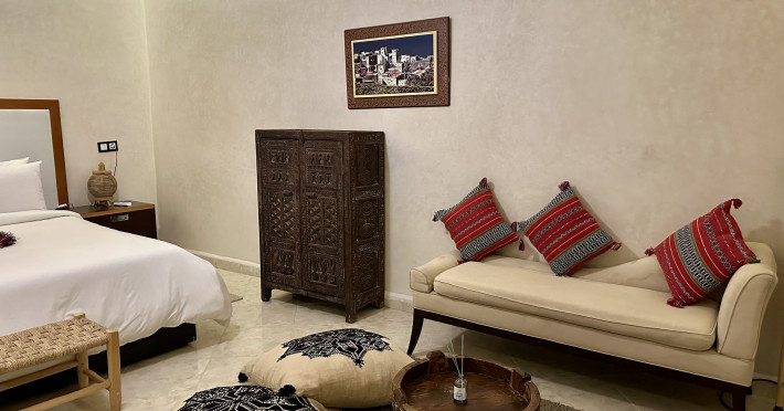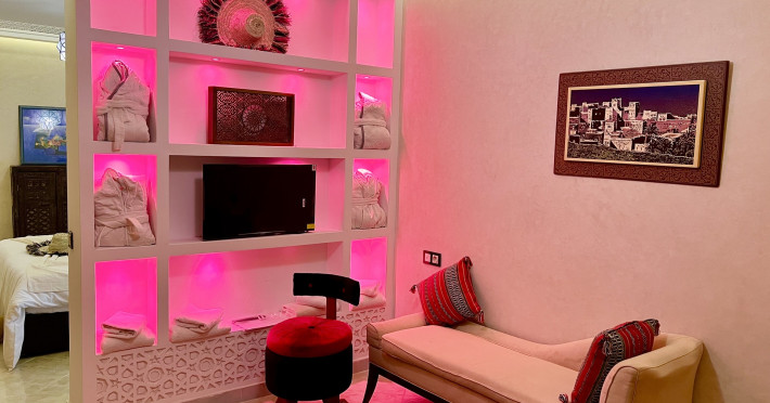 The hotel Riad Tislite & Spa is about 150 km from the airport. The air-conditioned halal hotel is equipped with a 24h reception, a lounge as well as a lobby. For the smallest children prams can be rented in the hotel. You can store your luggage in the hotel's storage room. If necessary, you can contact the medical centre. The energy supply is 220 Volts. For guests on their honeymoon, the hotel has special offers such as a romantically-decorated room, personalised rooms/articles, rooms with a particularly romantic location and view, romantic dishes in the restaurant, sparkling wine, a present, a basket of fruit or flowers in the room. In your hotel, a lot of focus is placed on sustainability. This includes among others the hotel`s own recycling bins. For water, gas and a club card may incur extra charges at the hotel. American Express is accepted as means of payment. Due to its barrier-free facilities , such as wheelchair-accessible bathrooms, the hotel is also suitable for wheelchair users. Catering As catering services the hotel offers half board, half board plus, full board and full board plus. Breakfast is offered continental or à la carte. Enjoy your lunch with starters and desserts as well as salads from the buffet or à la carte (extras on request). Dinner is served as a set meal with starters, salads and desserts. Half board includes breakfast. When booking half board plus, breakfast and selected imported spirits (limited) are included. All Inclusive Light includes international alcoholic beverages. When booking all-inclusive, one meal in the à la carte restaurant is included. As part of the all-inclusive service, coffee and tea (24h), international alcoholic beverages (24h, limited) as well as international alcoholic beverages (unlimited) are available at no extra charge. In the gastronomic area also gluten-free dishes are served. Guests are requested to wear appropriate clothing at lunch. Distances- Nearest bank: approximately at 30 km