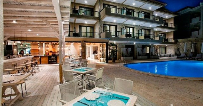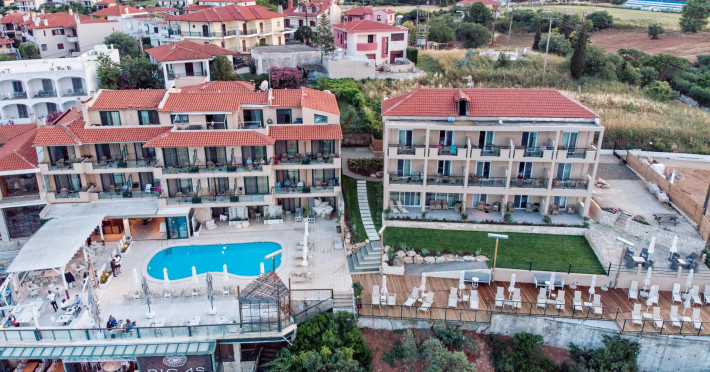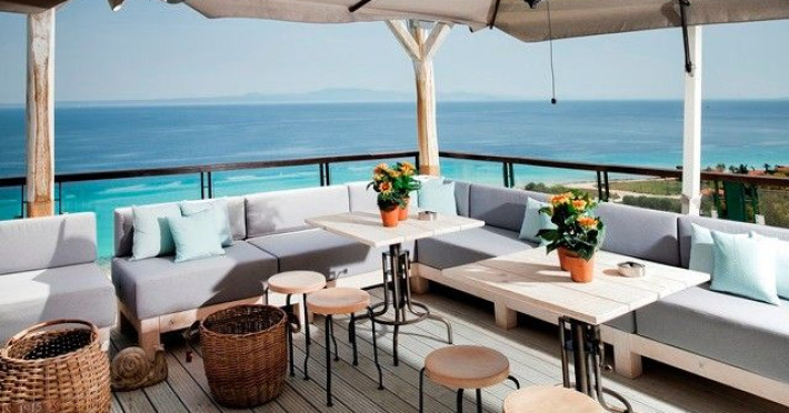 “A chic hotel with sea views that are to die for, the Hotel Rigas was made for relaxation.”The Rigas scores top marks for its setting. Set on a tranquil hillside in Afitos, it looks out over the Sithonia Peninsula and endless blue seas. It’s a few minutes’ walk into the village where you’ll find a huddle of shops, bars and restaurants. So location-wise it ticks all the right boxes.The hotel makes a big impression, too. Built in traditional stone, it looks right at home in its surroundings. But on closer inspection, you’ll find this hotel is more boutique chic than authentic Greek. Take the curvy swimming pool. Set into a stylish decked terrace, it’s surrounded by contemporary sun loungers that face out to sea. And to the side is a pool bar with retro-style chairs and luxurious sofas piled with cream cushions. It’s the perfect spot for sunset cocktails.The smart interior is just as funky. Well-groomed bedrooms are dressed in a palette of creme caramel and rich chocolate. They all come with double beds backed by fashionable wooden headboards, plus a balcony or terrace with a sea view. And if you want to up the luxury, plump for a suite which features a lounge area and a luxurious whirlpool bath for two.