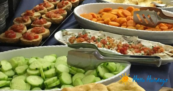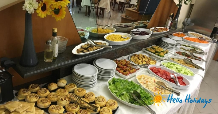 Micul dejun este servit în sala de mese. sub forma unui bufet continental. Restaurantul este specializat în gastronomia mediteraneană, dar la cerere oferă şi opţiuni vegetariene şi fără gluten.