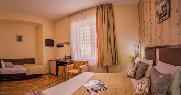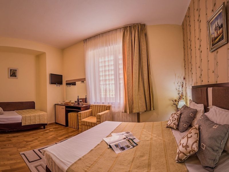 Hotel Rina Cerbul is located in the center of Sinaia, 1640 feet from the train station and the gondola elevator. It offers free WiFi. The rooms at the Rina Cerbul Hotel feature light wooden furniture, parquet floors, a TV, a refrigerator, and a bathroom. A continental breakfast and Indian dishes can be served at Ramayana Cafe & Restaurant, directly connected to the hotel. There you can also sip the tea of your choice from a rich collection of assortments, or relax with a flavored hookah. You can also enjoy Rina Sinaias restaurant and wine cellar. A shopping center is 656 feet away from Hotel Rina Cerbul. The property is also 1.2 mi from Peles Castle.No special conditions apply for groups. WiFi is available in all areas and is free of charge. Private parking is available on site (reservation is not needed) and costs RON 20 per day. Pets are not allowed. Children of all ages are allowed. Children 3 and under stay for free when using an available crib. Children 5 and under stay for free when using an existing bed. Children from 6 to 12 years old stay for 40Â lei per person, per night when using an existing bed. People no matter the age stay for 40Â lei per person, per night when using an available extra bed. Any type of extra bed or crib is upon request and needs to be confirmed by management. Additional fees are not calculated automatically in the total cost and will have to be paid for separately during your stay.Checkin Time: 15:00Checkin End Time: 00:00Checkout From: 07:00Checkout End Time: 12:00Hotel important information: Please inform Hotel Rina Cerbul of your expected arrival time in advance. You can use the Special Requests box when booking, or contact the property directly using the contact details in your confirmation. Guests are required to show a photo ID and credit card upon check-in. Please note that all Special Requests are subject to availability and additional charges may apply. Please note that the property accepts holiday tickets as a payment method. Please note that this property uses an exchange rate that may vary with +2% from the Romanian National Bank exchange rate. When booking 3 rooms or more, different policies and additional supplements may apply. The property will contact you after booking to provide more details.Datorita dinamicitatii domeniului disponibilitatea ofertelor se modifica de la un moment la altul. De aceea ofertele sunt valabile in limita locurilor disponibile. Agentia nu este responsabila pentru eventualele neconcordante care pot aparea intre informatiile privind tarifele si alte detalii din site si informatiile primite in agentie. In aceste cazuri vor avea prioritate, intotdeauna, informatiile primite in agentie.
