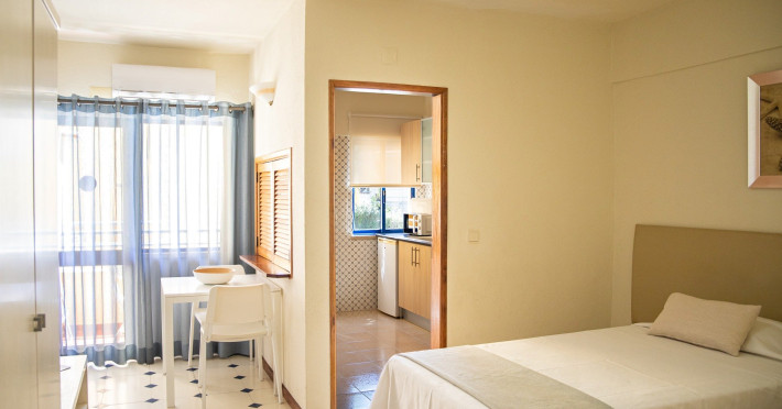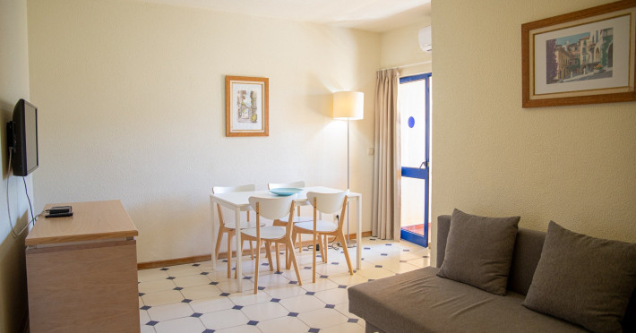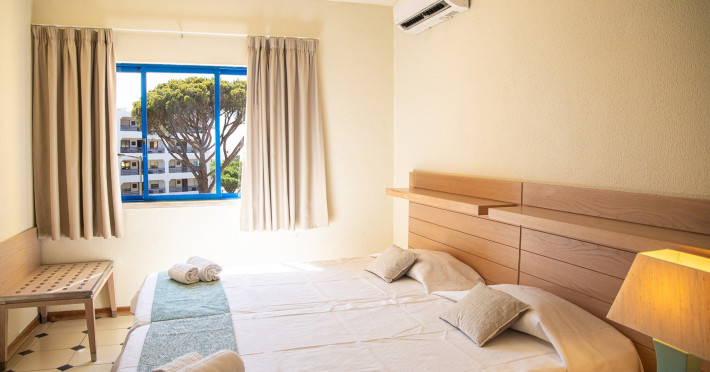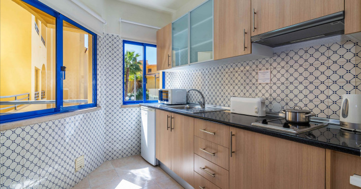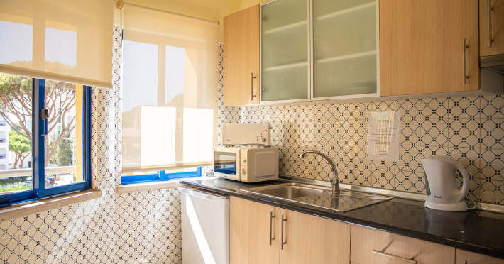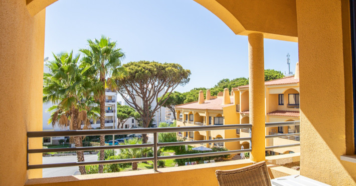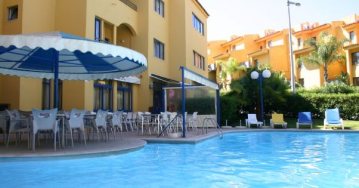 The accommodation has been integrated into an extensive green area. The apartment hotel comprises a total of 112 units spread over 4 storeys and includes a lobby, a hotel safe and lift access. Guests ...Nearest airport: FAO. The accommodation has been integrated into an extensive green area. The apartment hotel comprises a total of 112 units spread over 4 storeys and includes a lobby, a hotel safe and lift access. Guests can choose between the on-site café, bar and restaurant for refreshment options. For an additional fee guests can make use of the laundry and bike hire service. A car park is also available for those arriving by car. These apartments are located around 2.5 km from Falésia beach and the Vilamoura marina where guests will find shops, tourist attractions, nightlife spots and public transport links. Faro Airport is some 17 km from the accommodation. The accommodation units range between studios with sofa beds and 1 and 2-bedroom apartments, each with a balcony. The accommodation is all en suite and features, TV set, kitchen with mini-fridge and cooker, an iron and ironing board and a safe. Individually regulated heating units come as standard. The apartment hotel is just 300 m from Pinhal golf course and approximately 2.5 km from other golf courses. The complex itself features an outdoor pool with a children's section. Sun loungers and parasols have been laid out and there is also a poolside snack bar. For an additional fee guests can try their hand at banana boating, water skiing, jet skiing, motor boating, sailing, catamaran boating, tennis and mini-golf.