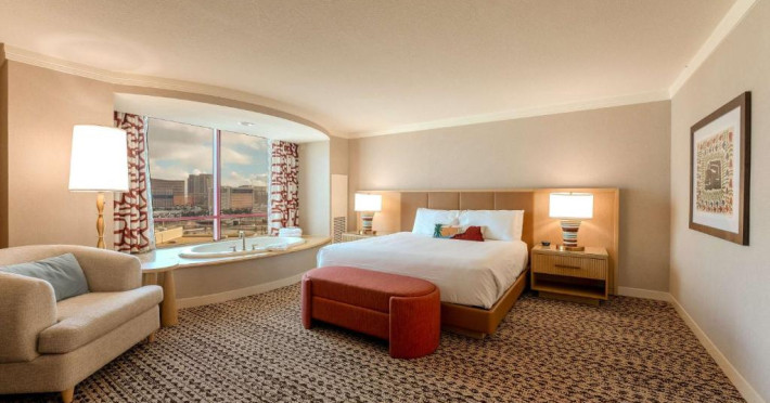 Opțiunile includ 1 paturi king-size sau 2 paturi queen-size, etaje superioare și vedere la Las Vegas Strip sau la Valea Vegas. Suitele au o suprafață de peste 1.100 de metri pătrați și sunt perfecte pentru acea ocazie specială.