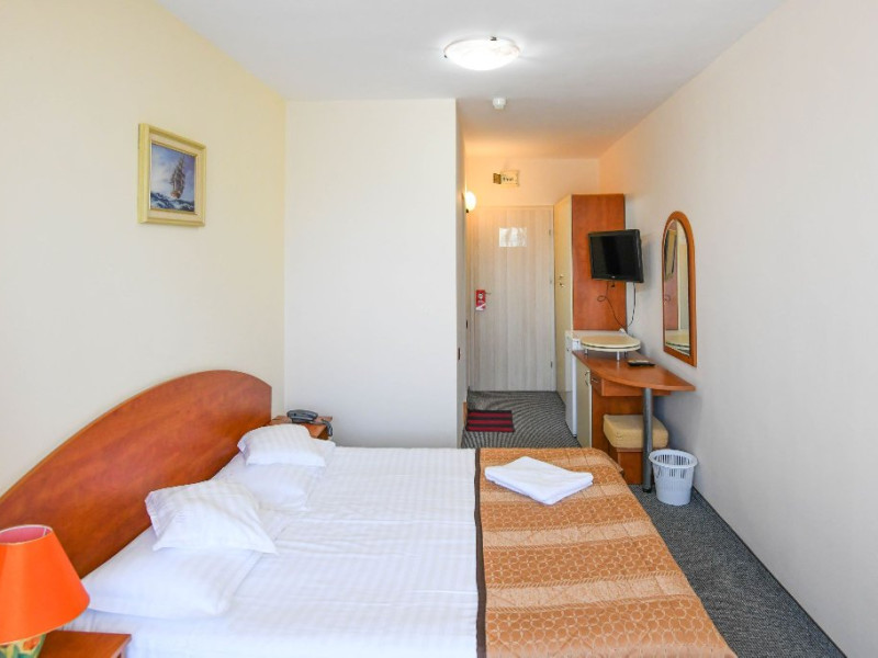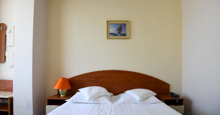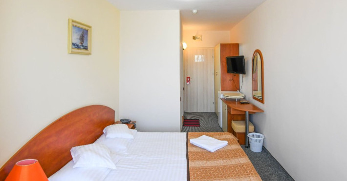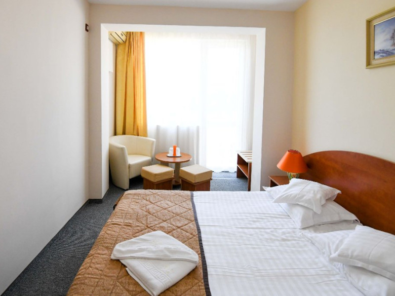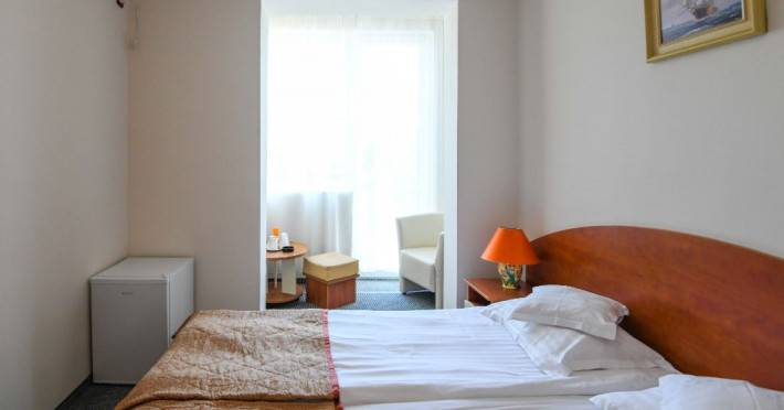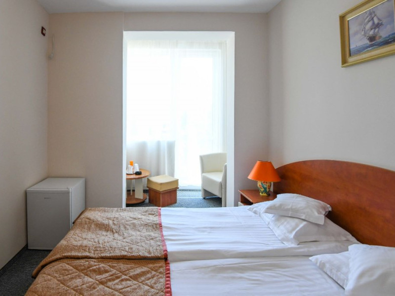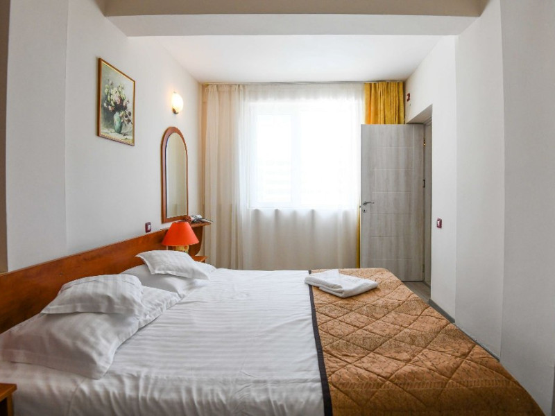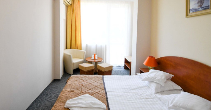 Camerele duble parter cu o suprafata de 15 mp, au 2 paturi twin, fara balcon, AC, TV, internet, minibar, baie cu dus, telefon.